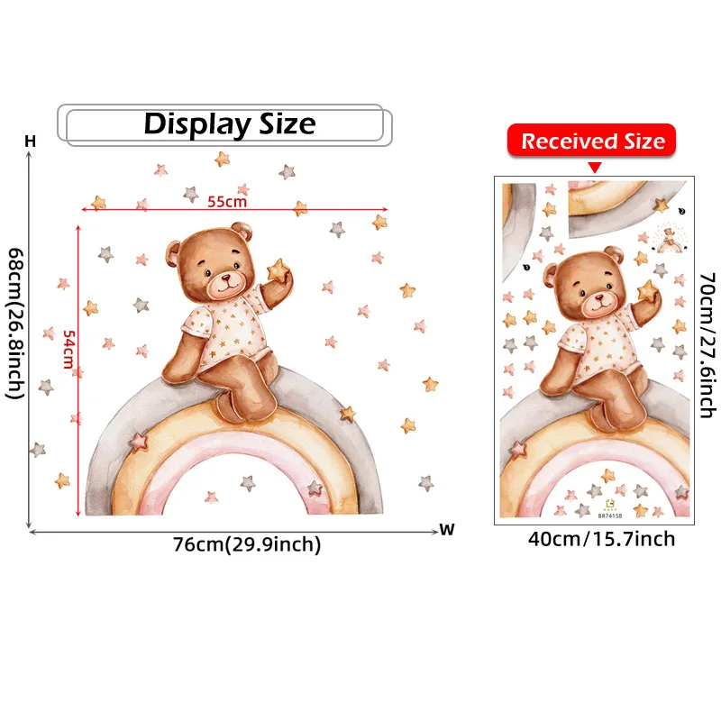 Мультфильм девушка медведь сидя на радуге цветные настенные наклейки со звездамиОписание товара