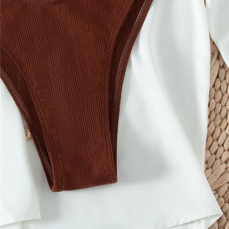 Соблазнительное бикини на косточках 2022, однотонная коричневая купальная одежда, женский купальный костюм, женский комплект бикини из двух предметов, пляжная одежда пуш-ап, купальный костюм