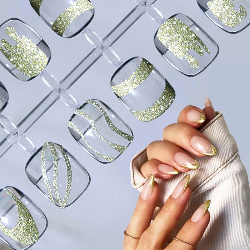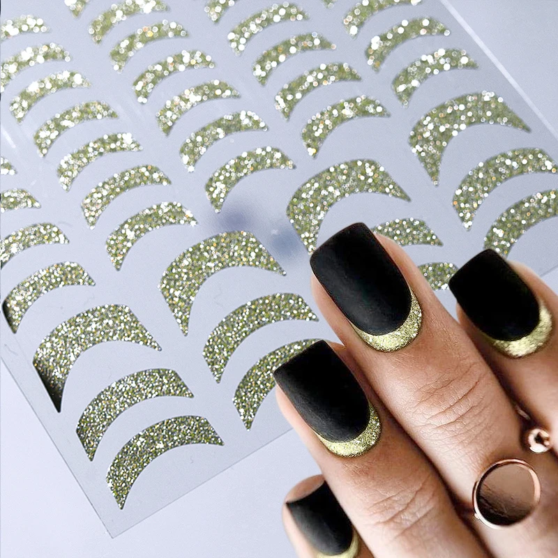 Золотые блестящие наклейки для ногтей с французскими линиями, блест...