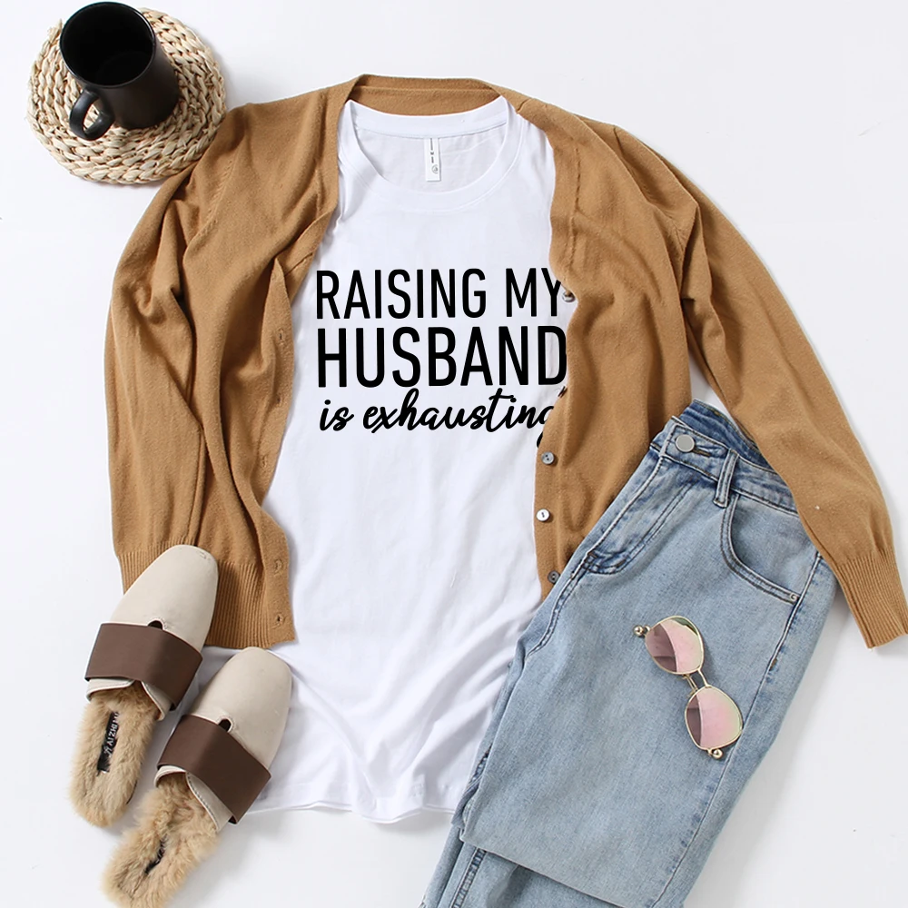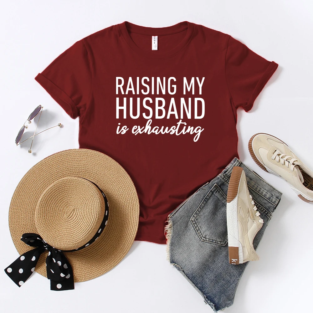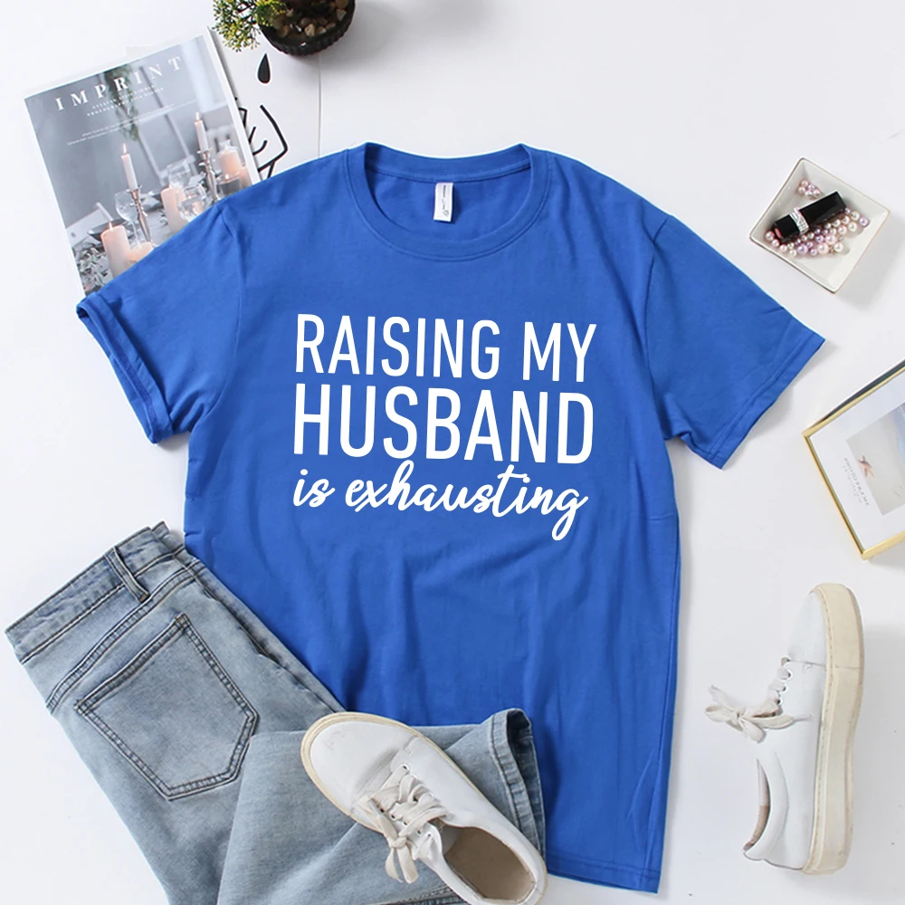 PatternRaising My Husband Is Exhausting Printed Women Summer T Shirt