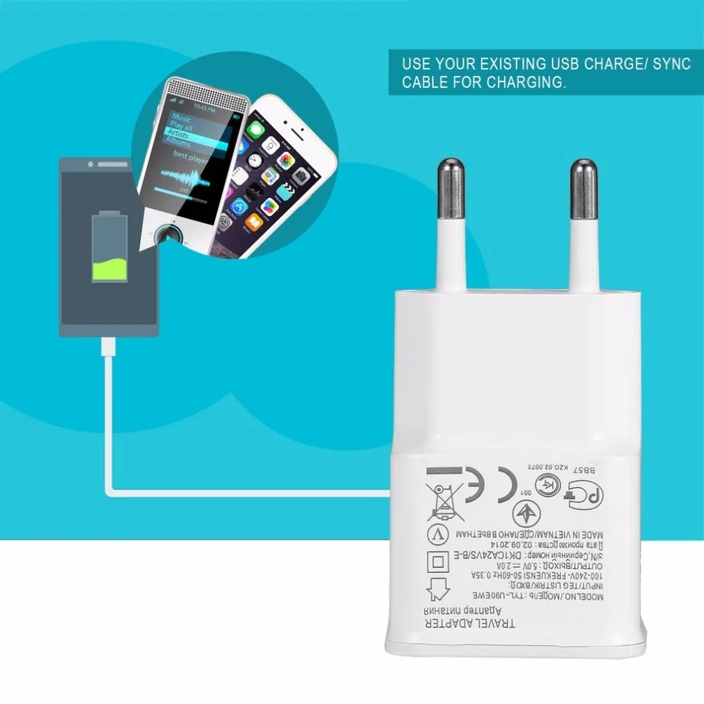 1.100% новый и высокое качество.2. Идеально подходит для путешествий, дома или офиса.3. Обеспечивает быструю и эффективную зарядку.4. Высокая эффективность и низкое энергопотребление.5. Защитная цепь для предотвращения перезарядки.6. Используйте имеющийся usb-кабель для зарядки/синхронизации.7. Размер кармана, компактный, легкий, прочный, легко брать в любом месте.8. Просто подключите его к розетке и зарядите через соответствующий USB кабель.9. Чтобы использовать его с любыми usb-устройствами, просто подключите usb-кабель (не входит в комплект) к вашему устройству, а затем к зарядному модулю, прост в использовании.10. Совместимость с большинством usb-устройств, включая Samsung, Apple для iphone, iPod, Microsoft Zune, мобильный телефон, КПК, цифровую камеру/видеокамеру и многое другое.Характеристики:Цвет: белыйВес нетто: 23 гТип вилки: штепсельная вилка европейского стандартаВыход: DC 5V 2A (макс.)Вход: AC100-240V, 50-60 Гц, 0.35AРазмер: Approx.6.9 (Д) x 3,6 (Ш) x 2,1 (В) смПосылка включает в себя:Настенное зарядное устройство USB-1 шт.(USB кабель не входит в комплект)