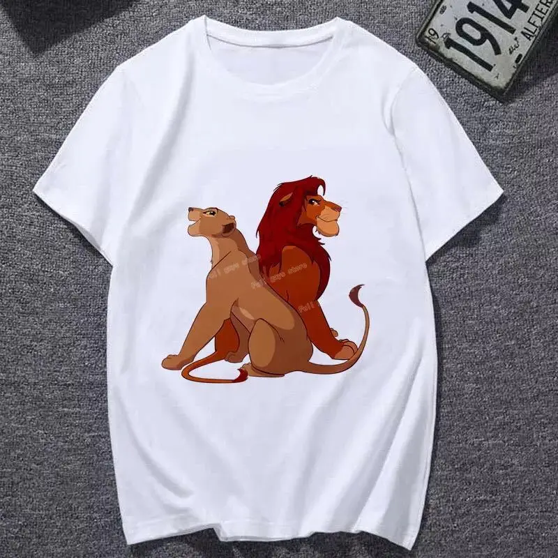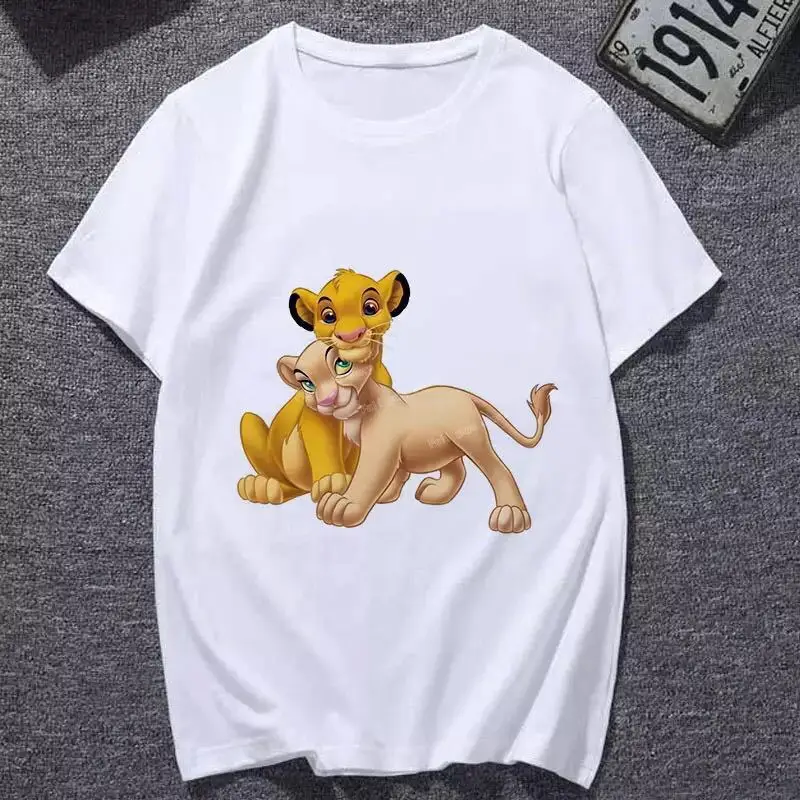 Футболка с рисунком льва и Симбы для девочек, модный топ с короткими рукавами и мультяшным аниме, подарок на день рождения