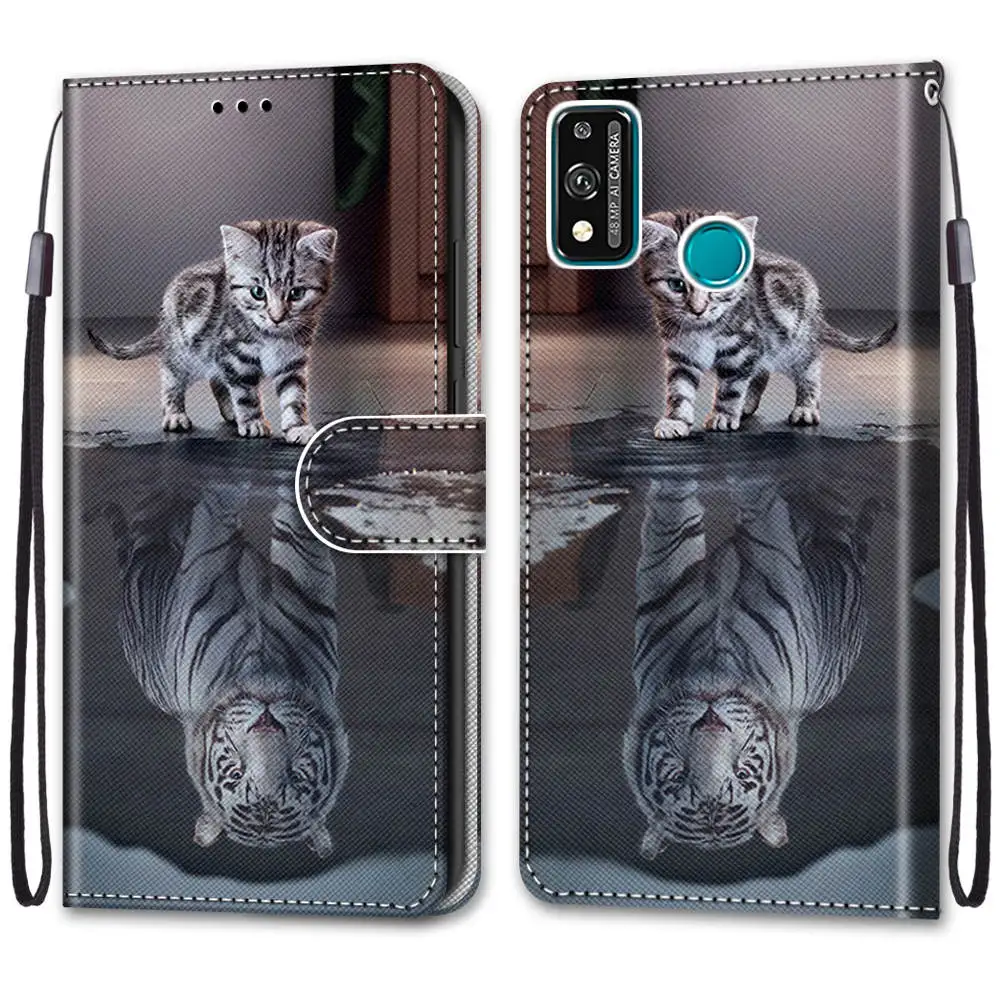 Милый чехол для телефона с изображением кота Тигра и животных для Huawei Honor 9A 8A 9X 10X Lite 9S 8X 8S 7A 7S 7X 20 10i 10 Lite, чехол-бумажник