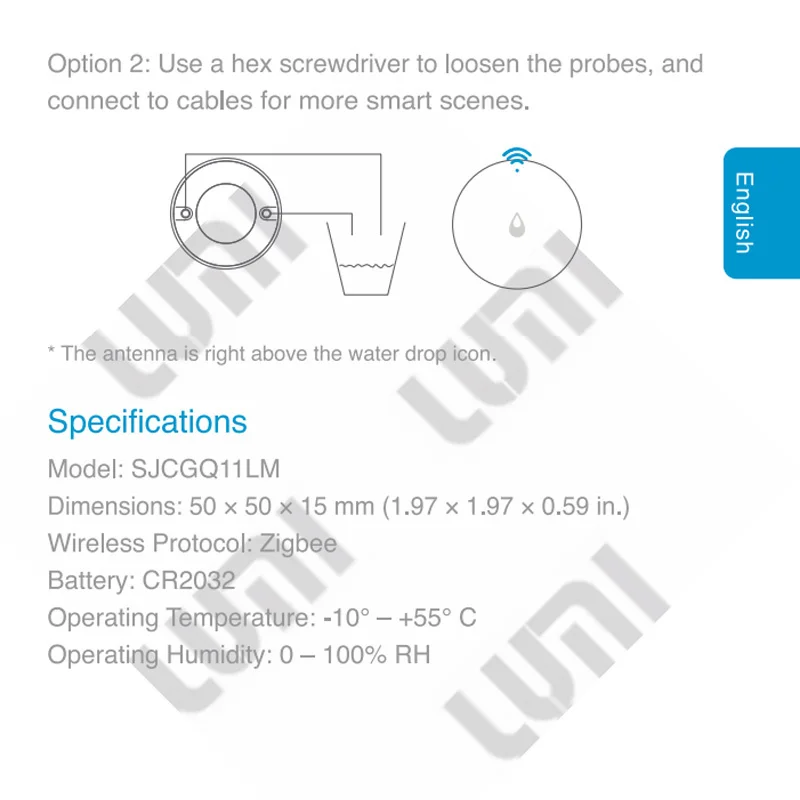 Когда уровень воды достигает до 0,5 мм, утечки воды Сенсор вызовет концентратор к издавать звуковой сигнал и отправит уведомление на ваш телефон.