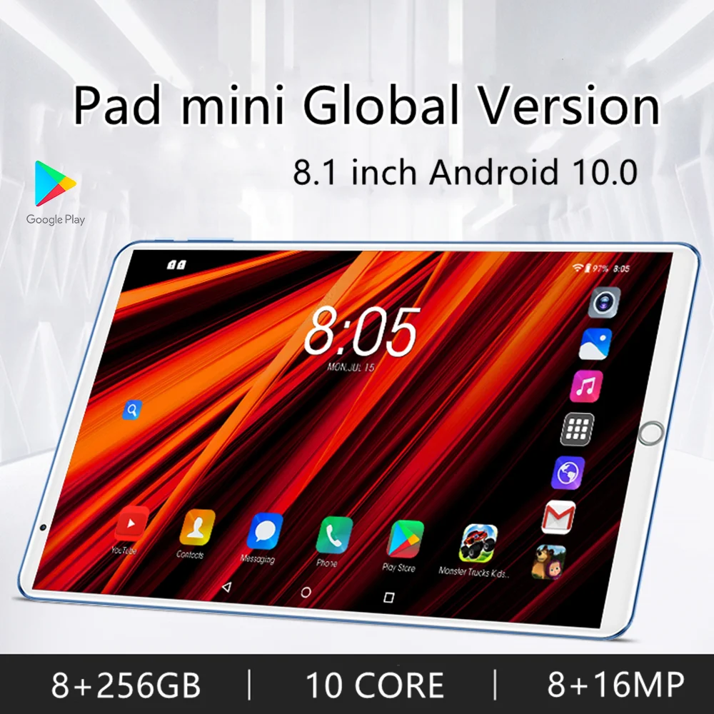 Планшет mini 8,1 дюймов 8 ГБ ОЗУ + 256 Гб ПЗУ Android планшеты ПК android 10,0 планшет 10 ядер планшет с ручкой две sim-карты планшет