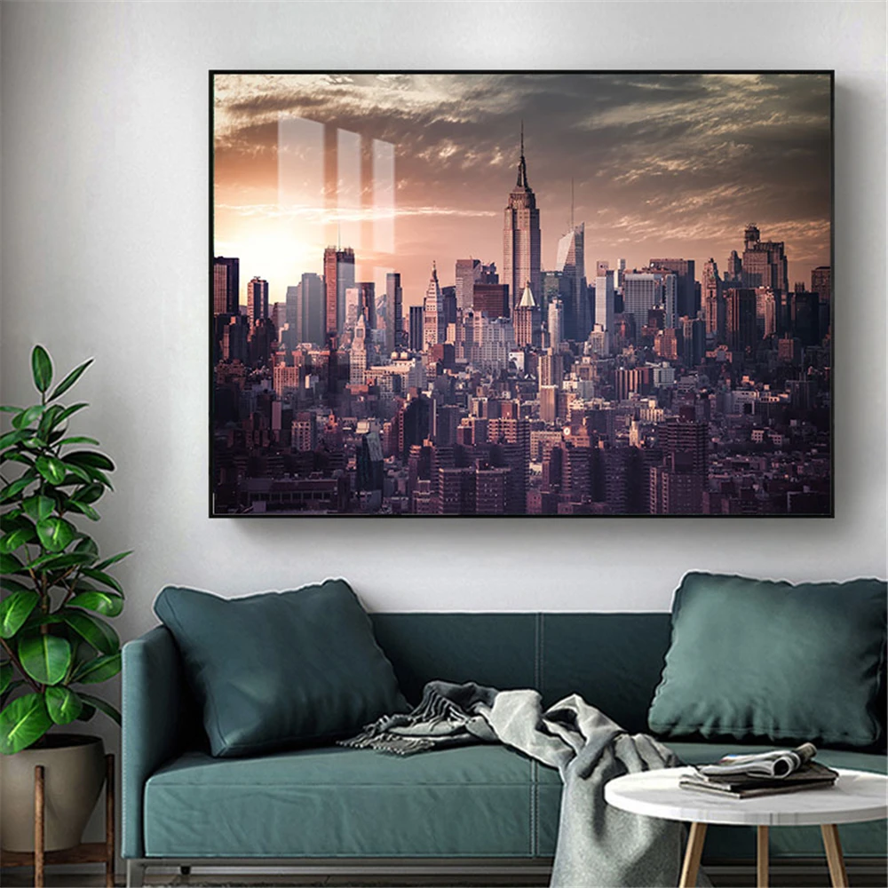 Изготавливаемый на заказ небоскреб Нью-Йорка холст фотообои современный стиль принты для вечерние Декор для дома комнаты #211217-38