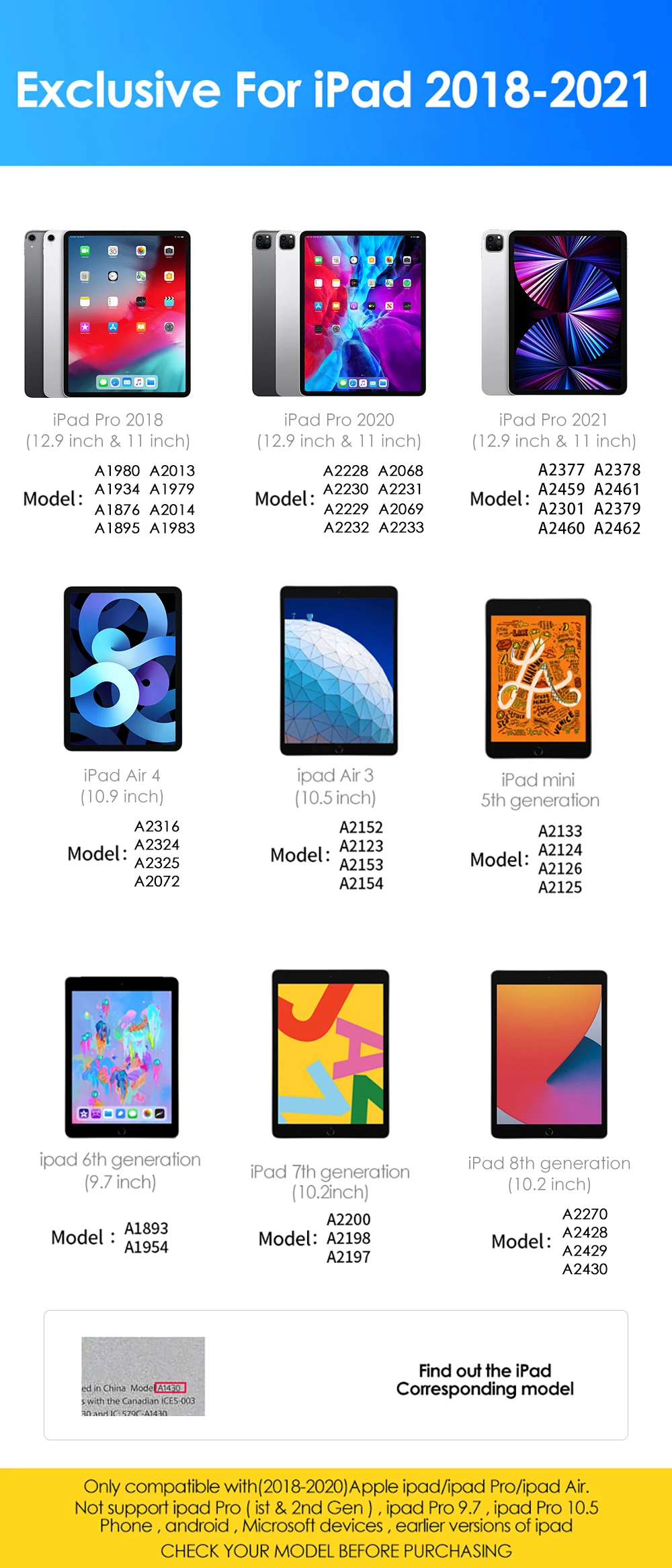 Для iPad 9,7 6-го поколения 2018 (A1893 / A1954)Для 2018 iPad Pro 11 дюймов (A1980 / A2013 / A1934 / A1979)Для 2018 iPad Pro 12,9 дюйма (A1876 / A2014 / A1895/a1983.)Для iPad Mini 5 2019 (A2124 / A2125 / A2126 / A2133)Для iPad 10,2 7-го поколения 2019 (A2197 / A2198 / A2200)Для 2019 iPad Air 3 10,5 (A2152 / A2153 / A2154 / A2123)Для 2020 iPad 10,2 8-го поколения (A2270 / A2428 / A2429 / A2430)Для iPad Air 4 10,9 2020 (A2316 / A2324 / A2325 / A2072)Для 2020 iPad Pro 11 дюймов (A2228 / A2231 / A2068 / A2230)Для 2020 iPad Pro 12,9 дюйма (A2229 / A2069 / A2232 / A2233)Для 2021 iPad Mini 6 (A2567 / A2568 / A2569)Для 2021 iPad 10,2 9 поколение (A2602 / A2604 / A2603 / A2605)Для 2021 iPad Pro 11 дюймов (A2377 / A2459 / A2301 / A2460)Для 2021 iPad Pro 12,9 дюйма (A2378 / A2461 / A2379 / A2462)