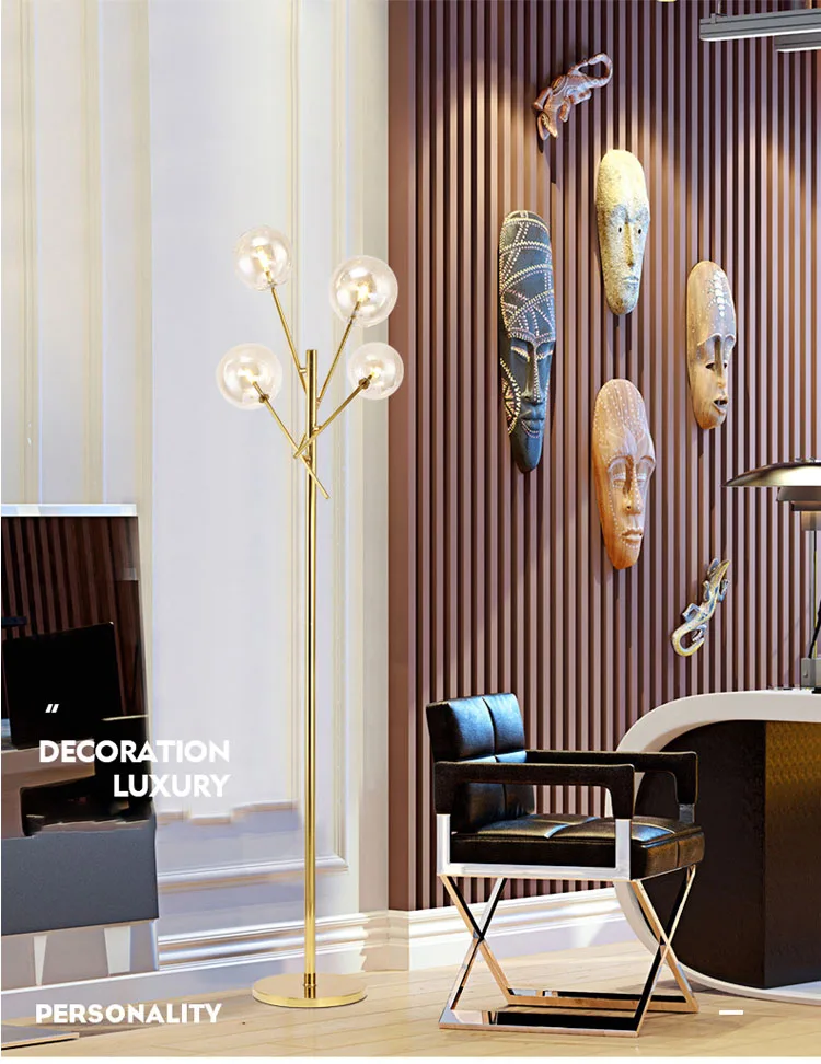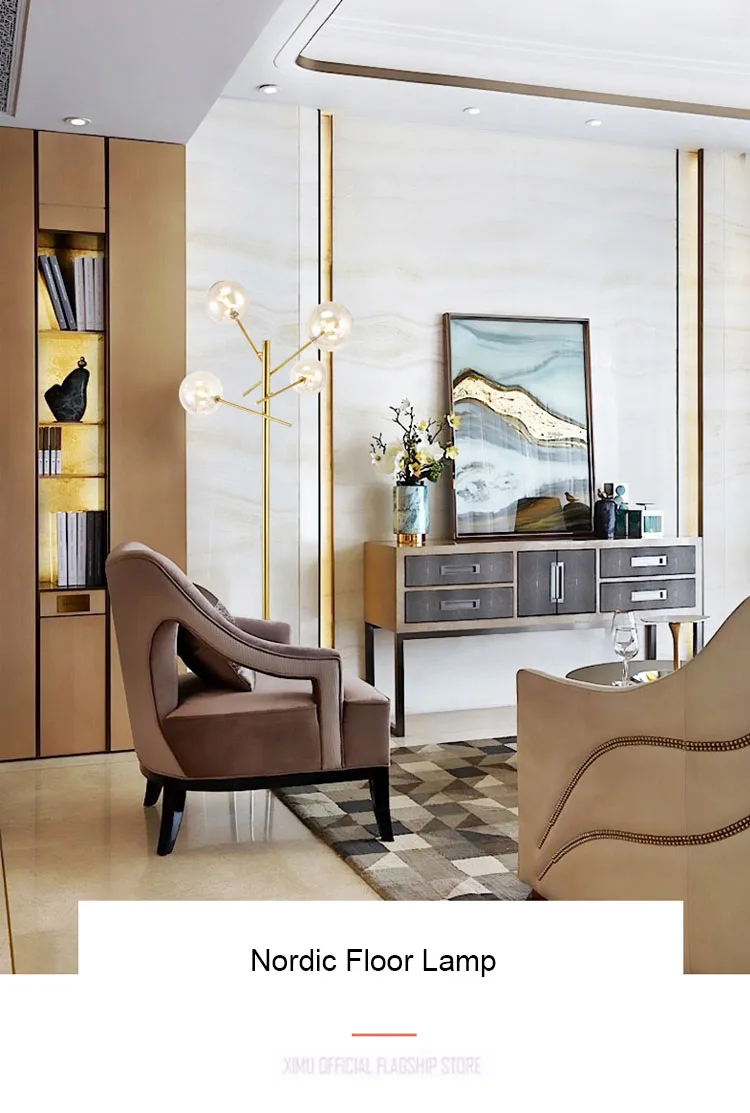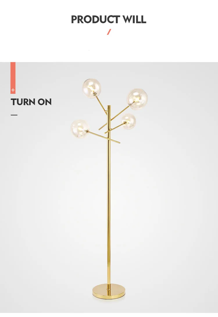 Золотые напольные светильники, стеклянная лампа, светодиодная подставка, лампа для гостиной, стоячие светильники, освещение для спальни, стеклянные напольные лампы с шариками