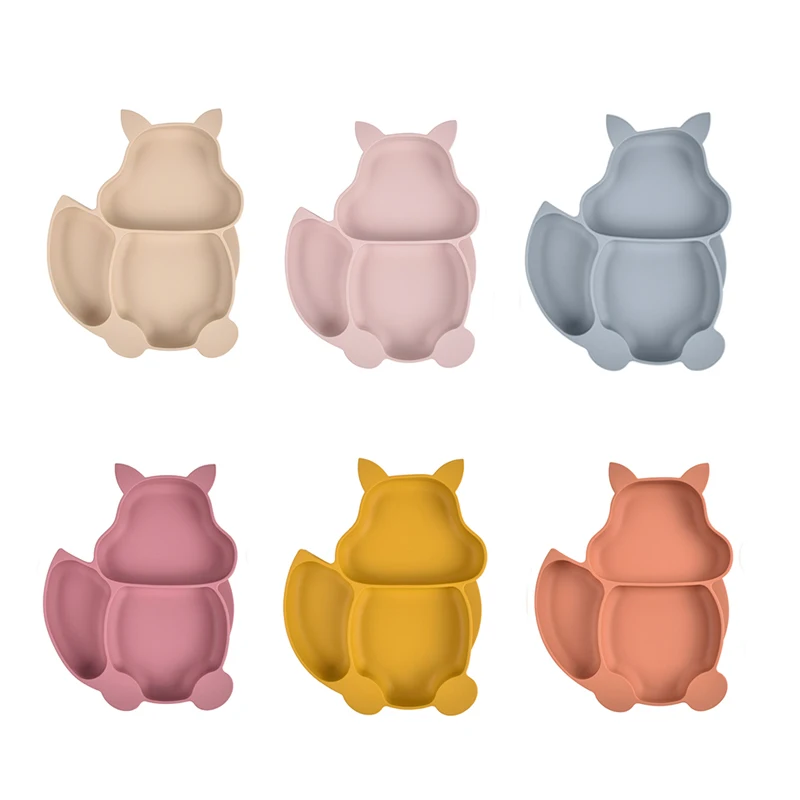 Набор силиконовых тарелок для детей с мультяшным рисунком, нескользящая тарелка для самокормления, всасывающая детская посуда, силиконовая тарелка для ребенка, для отлучения