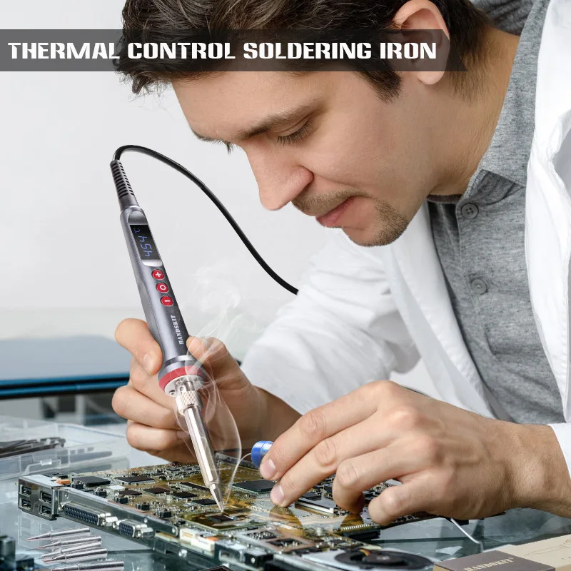 Особенности:Режим сна:Автоматически засыпает через 15 минут, защищает срок службы наконечника паяльникаБыстрое разогревание:Температура достигает 480 ℃ в минуту, сборка в PID оборудованаРегулировка температуры:Регулировка температуры от 180 ℃-480 ℃Защитная крышка:Когда вы закончите, пожалуйста, закройте защитную термостойкую крышку