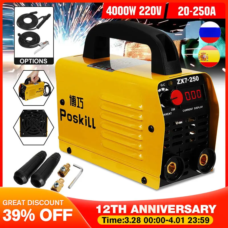 Портативный инвертор постоянного тока 4000 Вт дуговой сварочный аппарат 220 В MMA электрическая сварочная машина 200 А для самостоятельной сварки и электрообработки