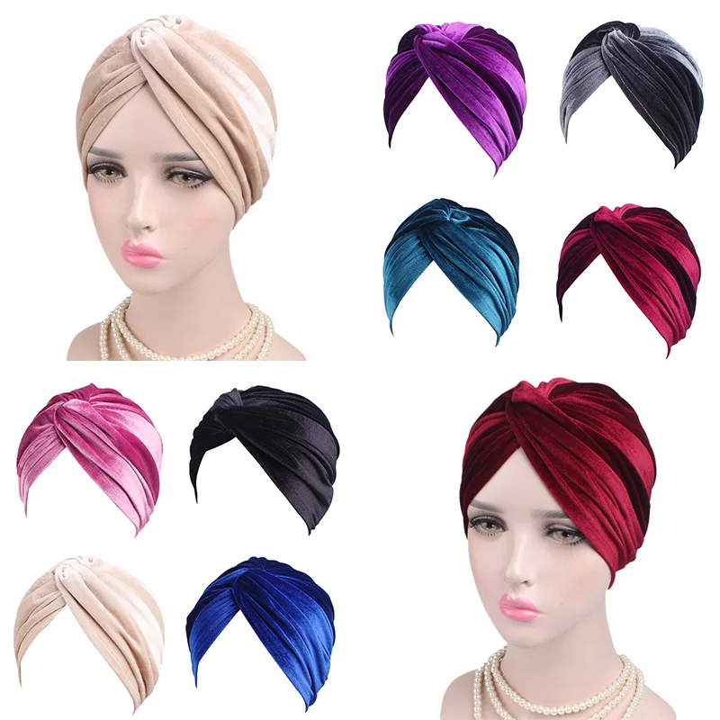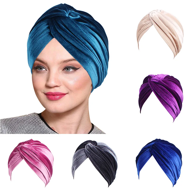 Женская бархатная бандана, шапка-тюрбан с перехлёстом, ободок для волос, теплая головная повязка на осень и зиму, Повседневная Уличная одежда, мусульманские и индийские шапки