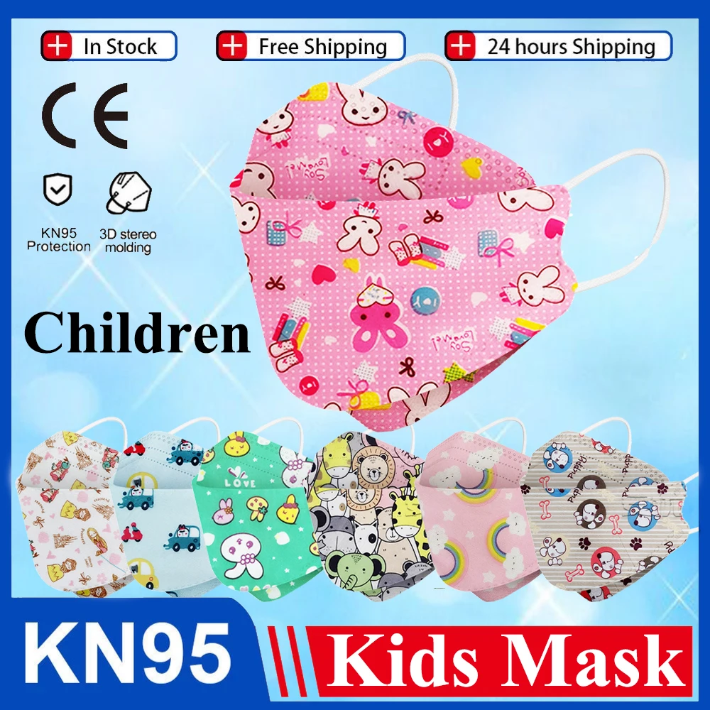 10/30/50/100 шт дети kn95 маска на лицо в Корейском стиле kf94mask одобренный гигиенические черные толстовки с рисунком из мультфильмов для девочек и мальчиков, детское платье KN95 маски kn95mask ffp2mask