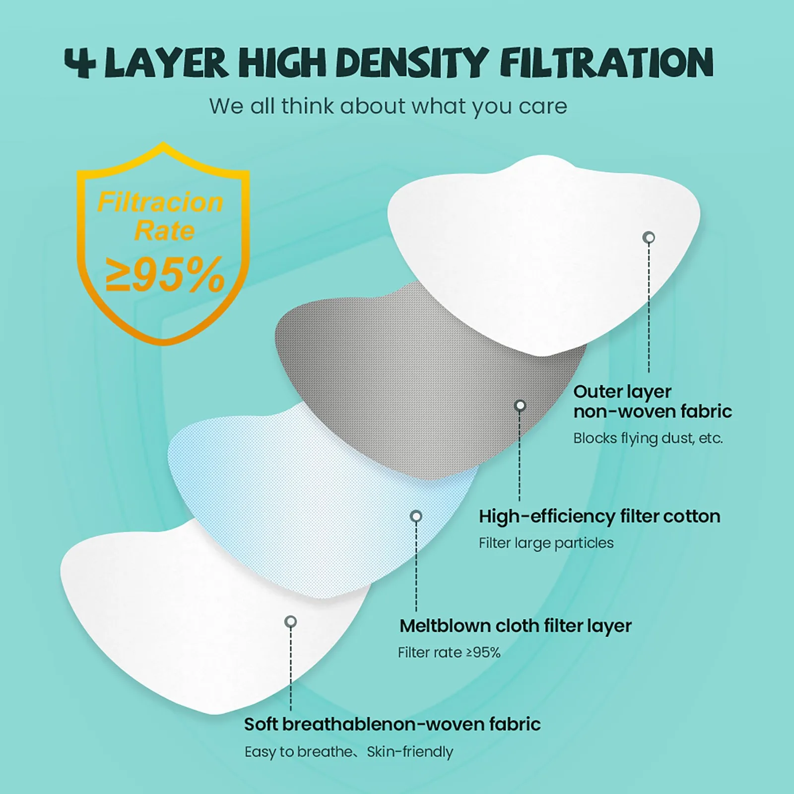 Маска Защитная дышащая многоразовая для мальчиков и девочек, 4 слоя...