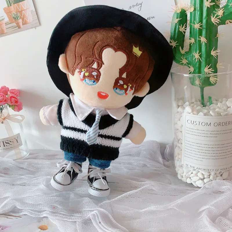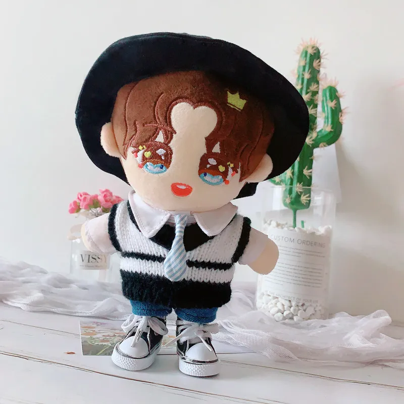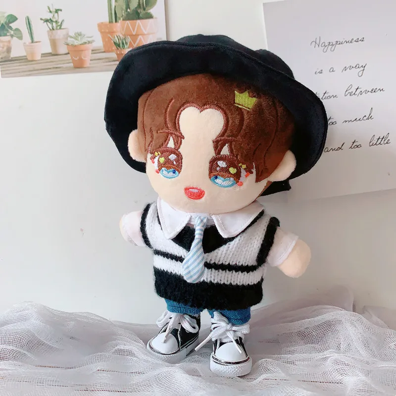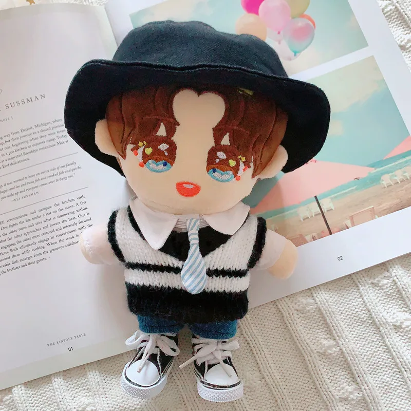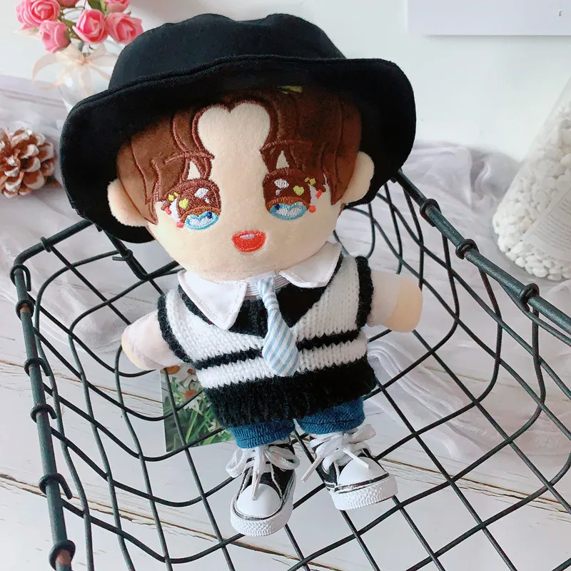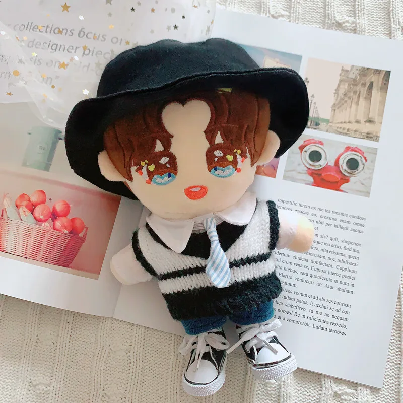 Кукольная одежда 20 см куклы-идол аксессуары Плюшевая Кукла Черная Рыбацкая шляпа свитер жилет костюм мягкие игрушки для корейской куклы Kpop EXO