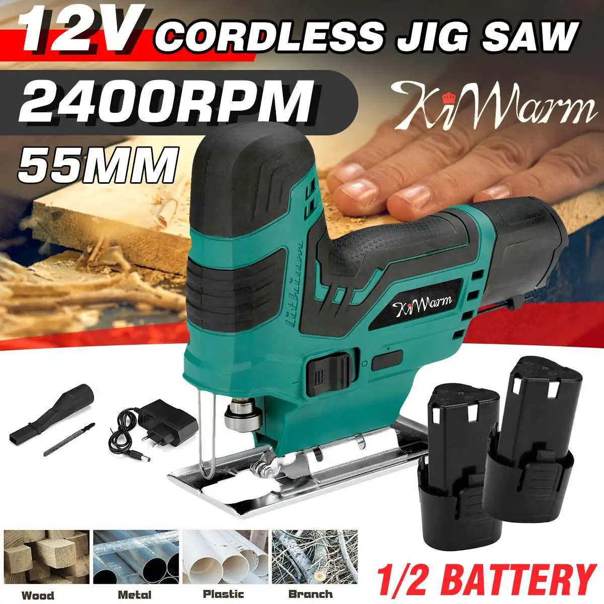 Беспроводная ножовочная пила KiWarm, 12 В, 55 мм, 2400 обмин, многофункциональная ножовочная пила, многоугловая электрическая пила, деревообрабатывающий Электроинструмент с батареей 12
