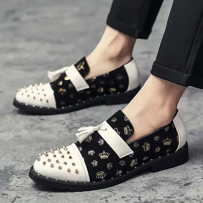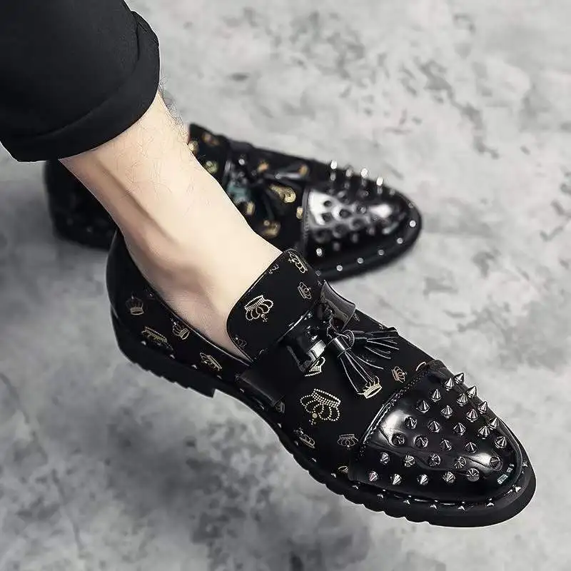 WEH/свадебные туфли для мужчин с заклепками; Роскошные брендовые модные дизайнерские черные туфли с кисточками; Мужская обувь на плоской подошве вечерние модельные туфли для выпускного вечера