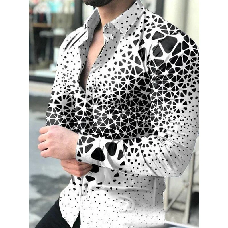 Роскошные мужские рубашки с отложным воротником, рубашка на пуговицах, повседневные дизайнерские топы в клетку с длинным рукавом и принтом, Мужская одежда, клубный кардиган для выпускного