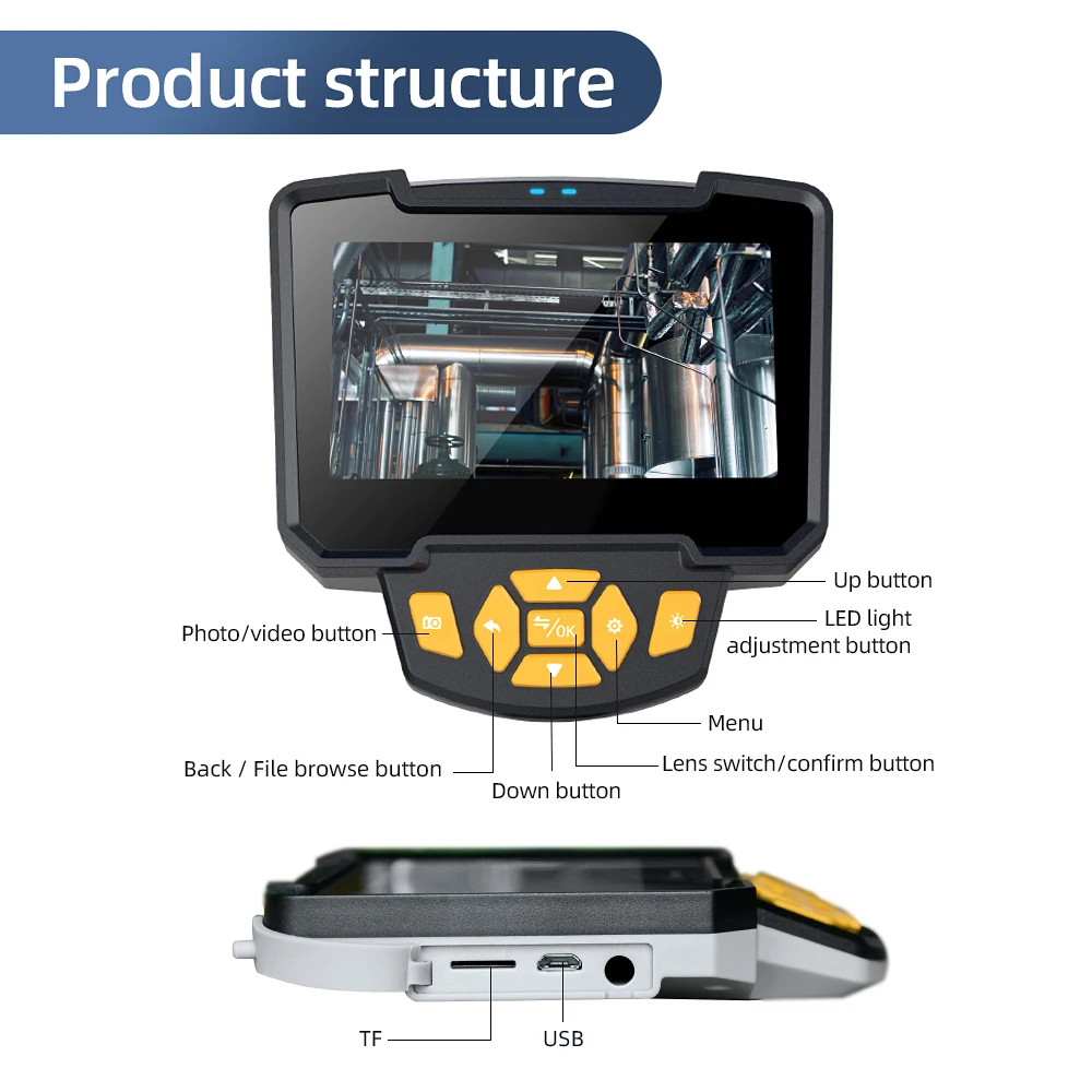 Цифровой промышленный эндоскоп, 4,3 дюйма, ЖК-камера для осмотра др...