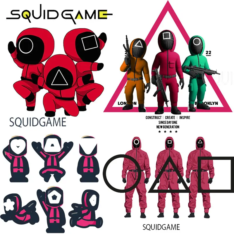 Термонаклейка с надписью Игра кальмар, маска-нашивки для одежды, футболки, куртки, сделай сам, Термотрансферная деталь на одежду