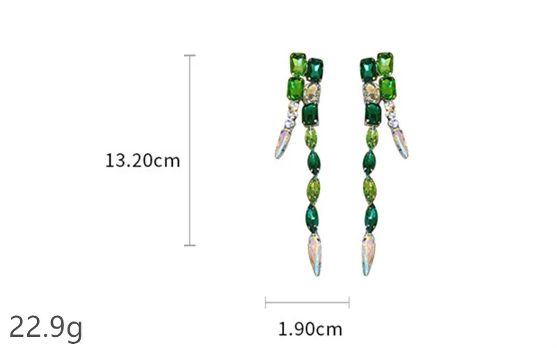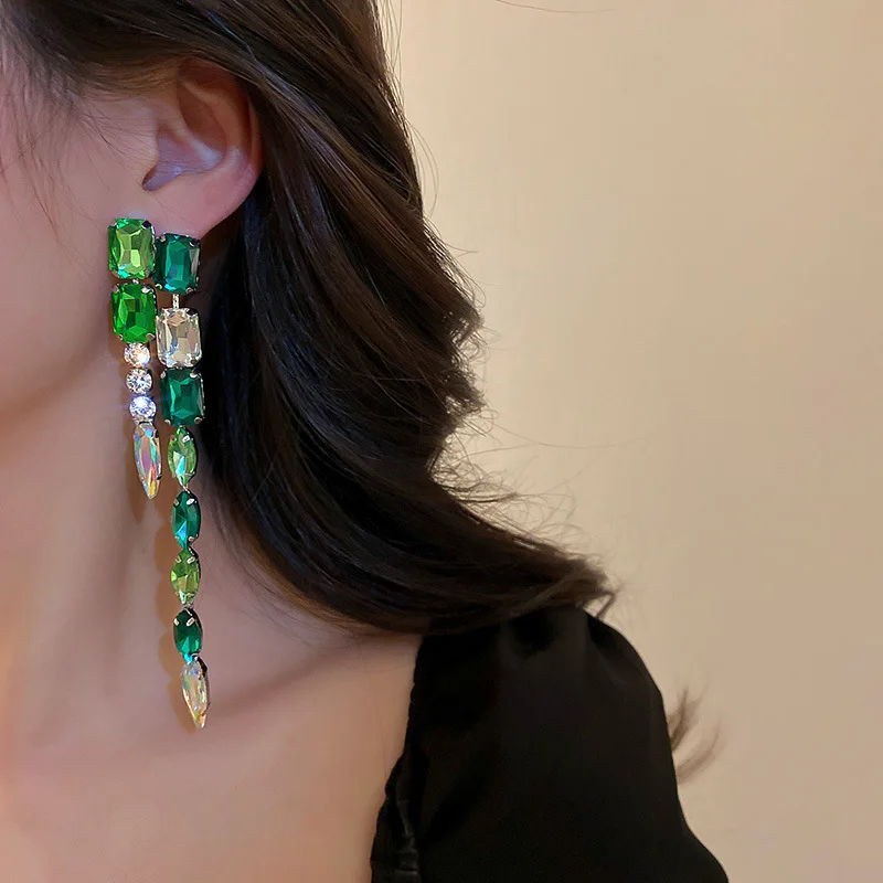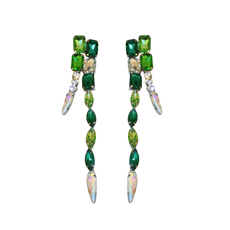 Женские Висячие серьги XIALUOKE, длинные зеленые прямоугольные серьги с кисточками и кристаллами, винтажные геометрические серьги гипербола, модные ювелирные украшения