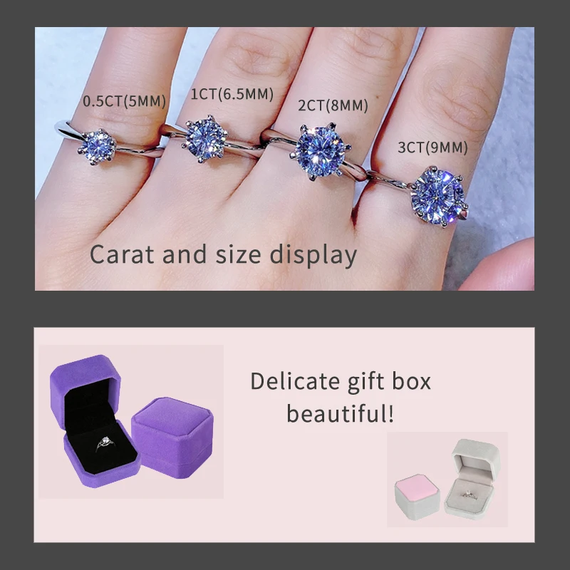 100% бриллиантовое кольцо с шестью когтями, Корона 1 карат, цвет 1 ...
