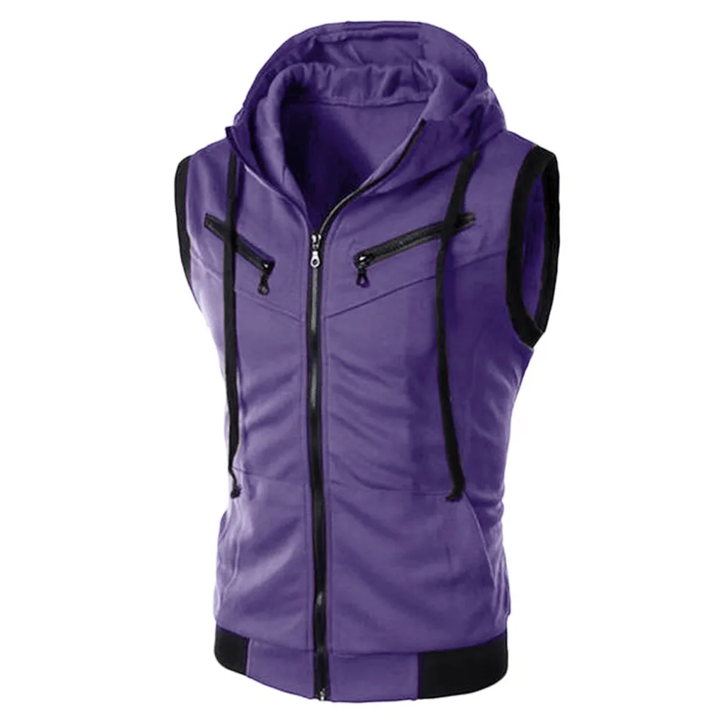 Модный мужской спортивный жилет, Летние повседневные однотонные топы без рукавов с капюшоном, новая приталенная Мужская блузка с карманами, мужская одежда