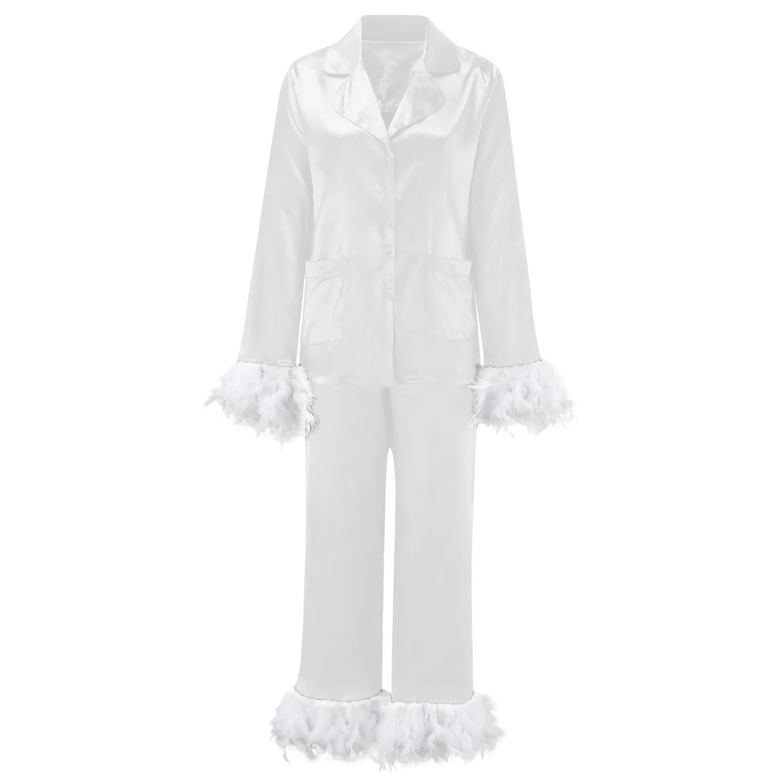Шикарные костюмы для отдыха из двух предметов с перьями, женская одежда для сна, пижамный комплект с длинными рукавами, шали из искусственного меха для подружки невесты на заказ, пижама из двух предметов