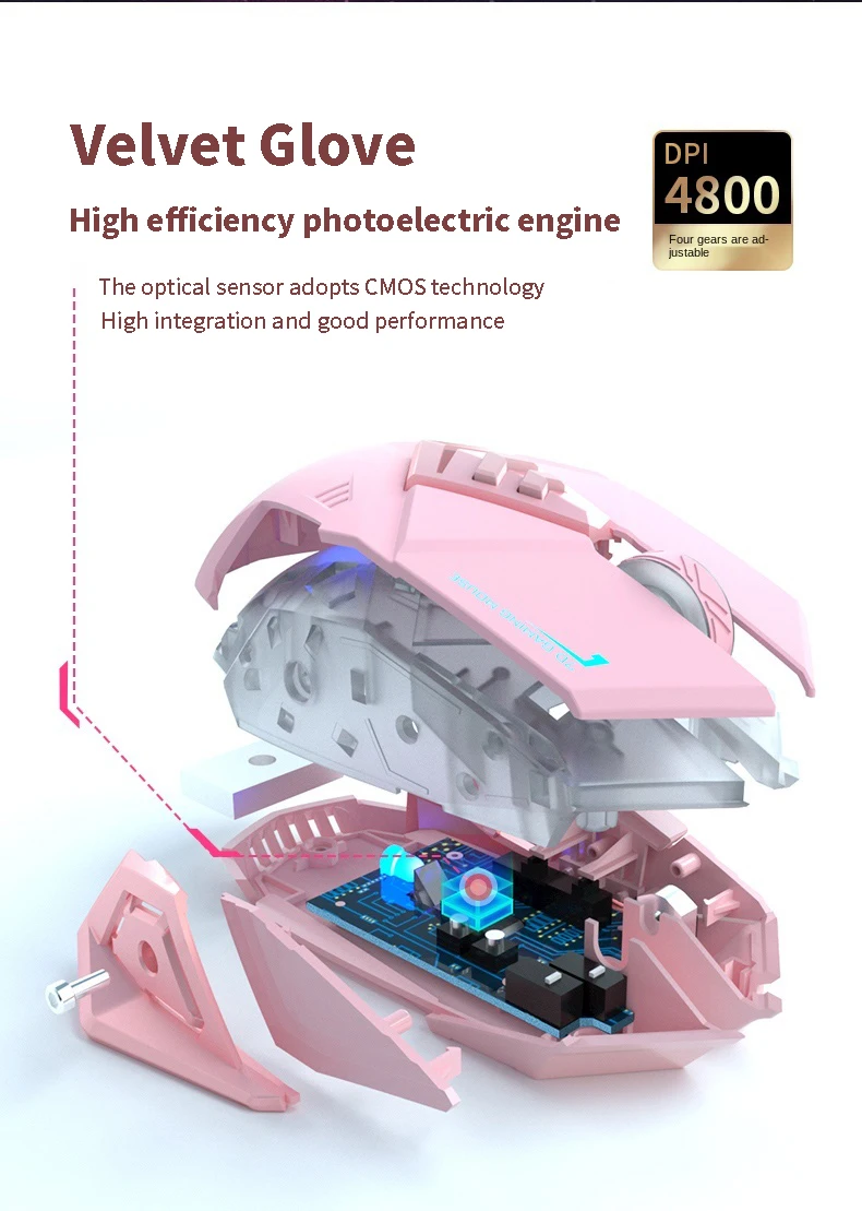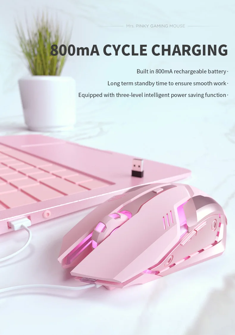 Беспроводная игровая мышь Girl Cute Pink Game, перезаряжаемая, 2400...