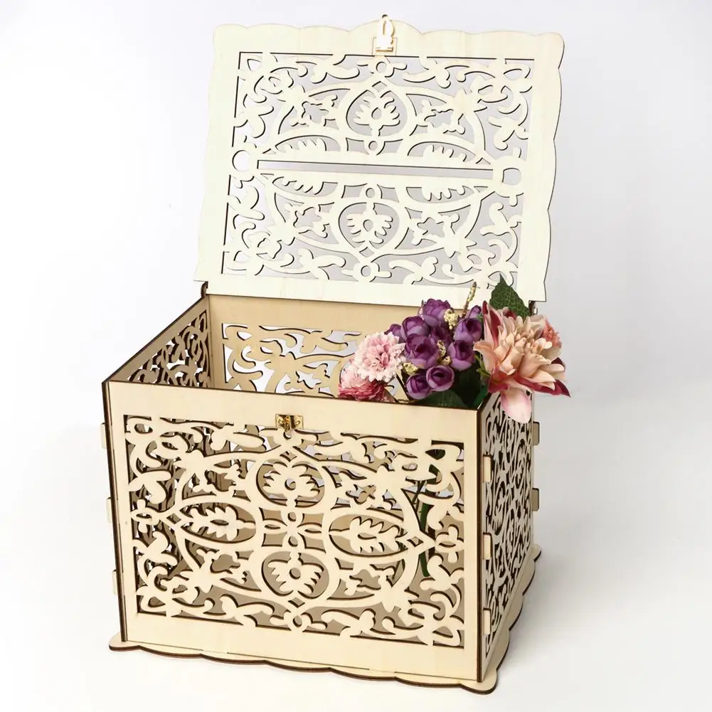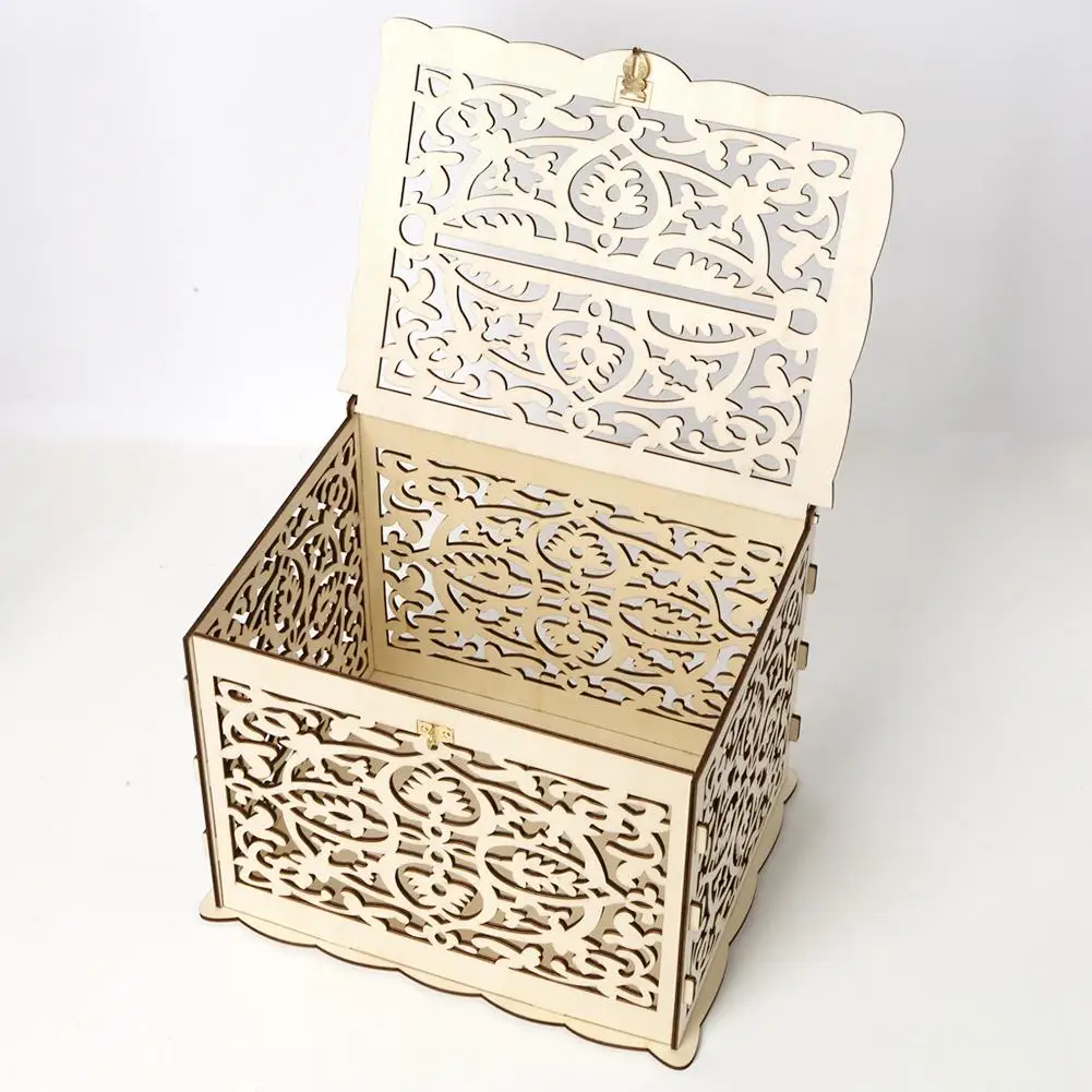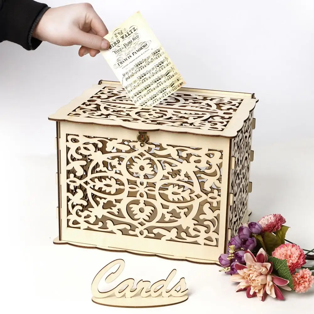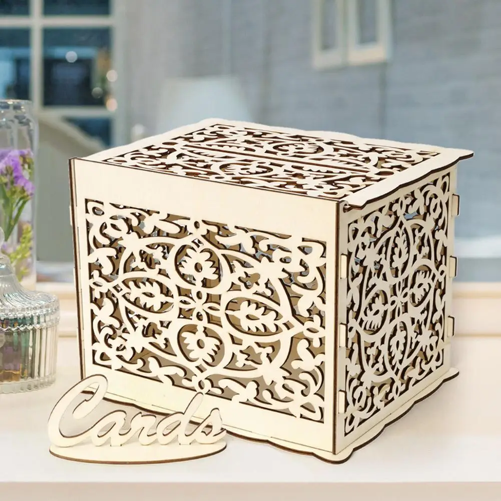 Деревянные открытки сделай сам, полый контейнер с замком, Подарочный красивый чехол для свадьбы, дня рождения, коробка для хранения денег, декоративная коробка