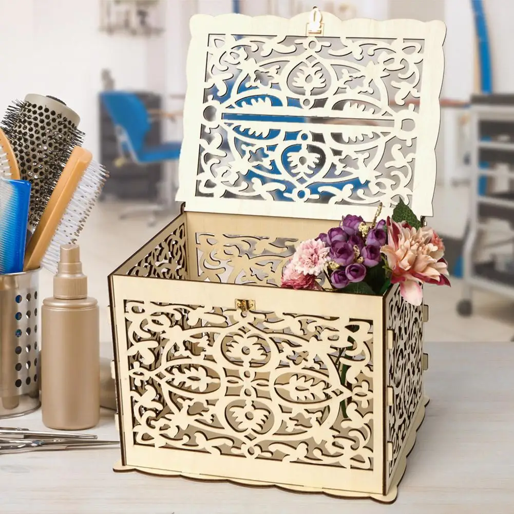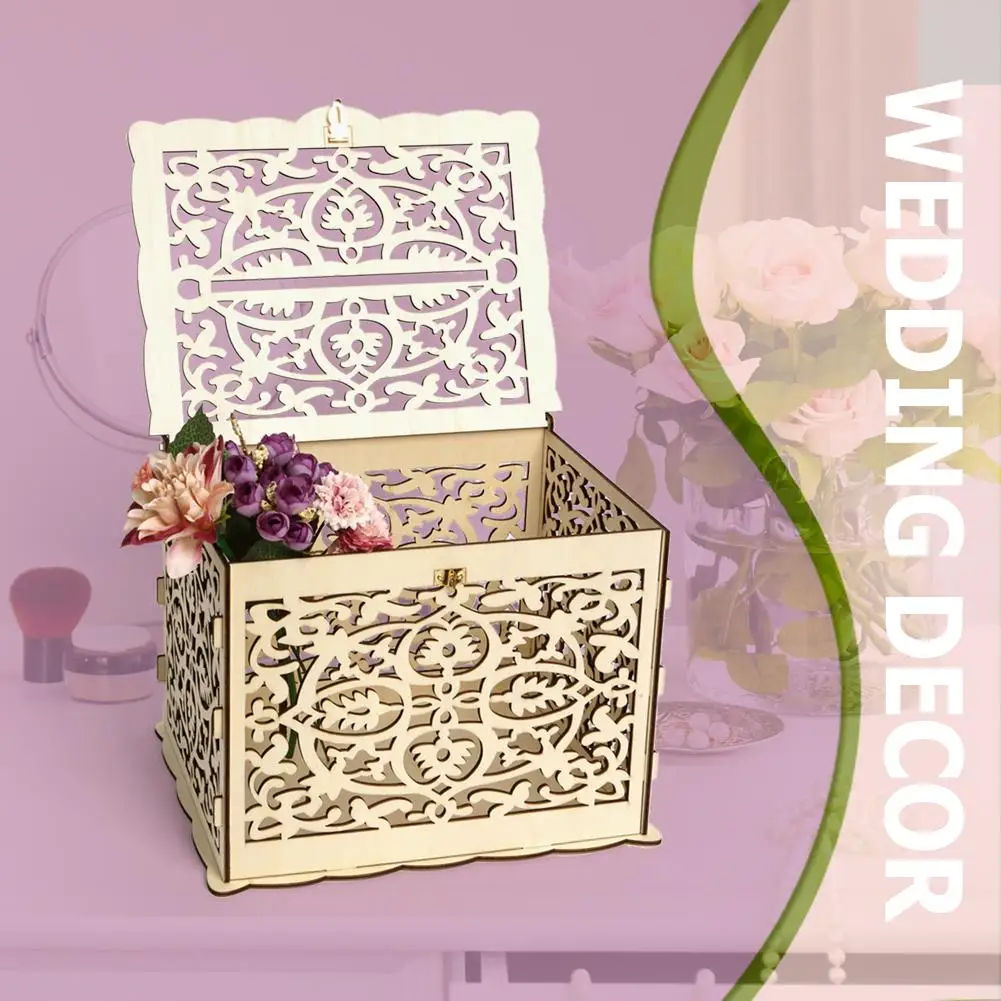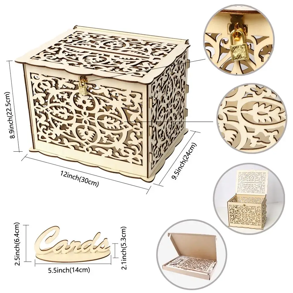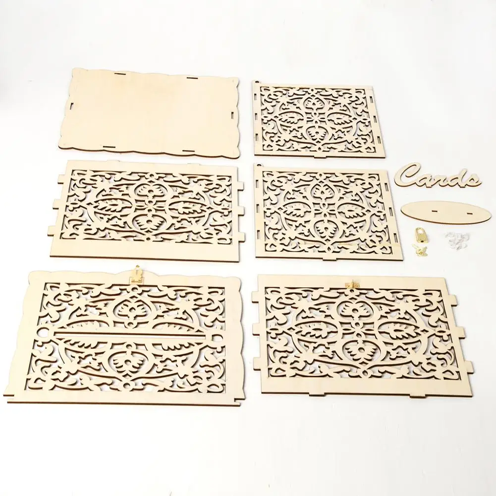 Деревянные открытки сделай сам, полый контейнер с замком, Подарочный красивый чехол для свадьбы, дня рождения, коробка для хранения денег, декоративная коробка
