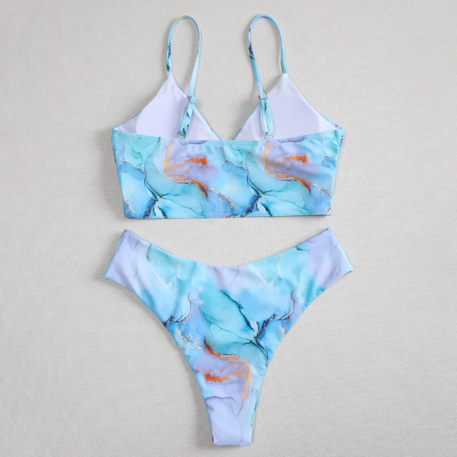 Купальник-бикини женский полосатый с чашками пуш-ап и высокой талией