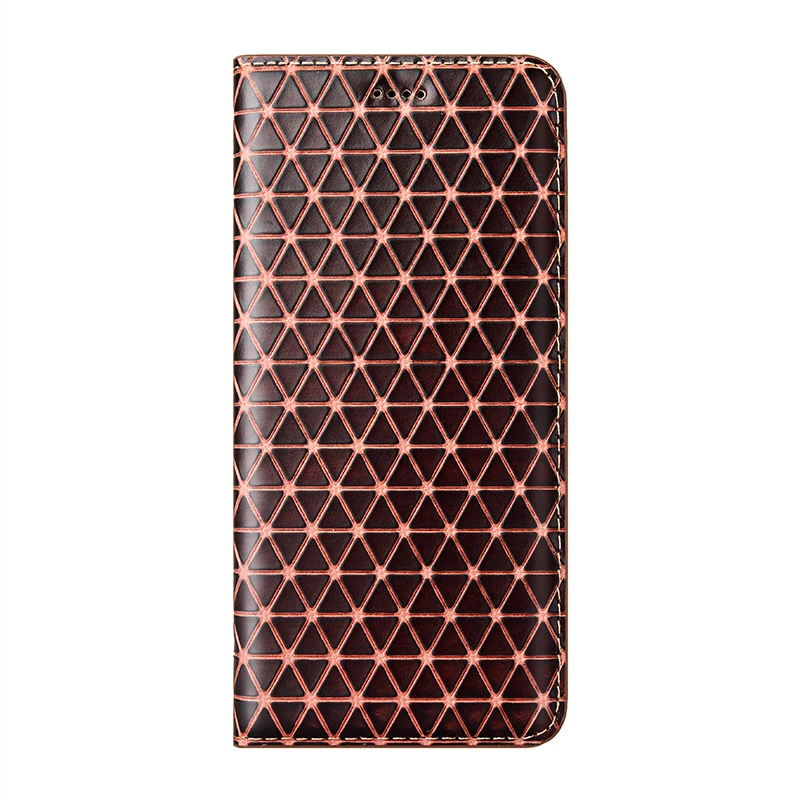Чехол-книжка из натуральной кожи с рисунком решетки и магнитом для ...
