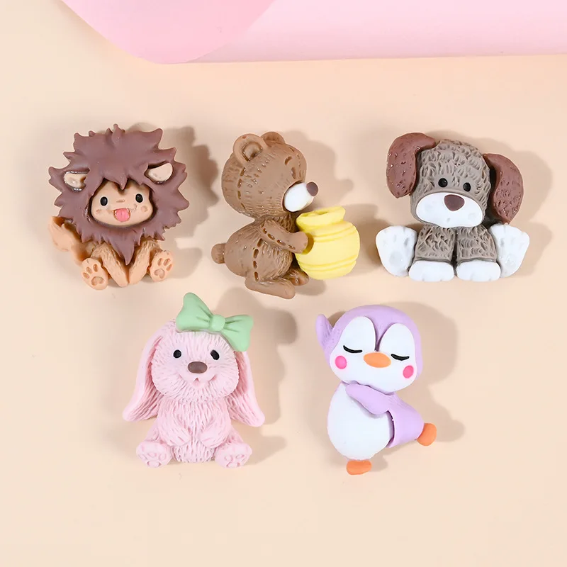 10 шт. Мультяшные животные Лев медведь собака Пингвин плоская задняя сторона кабошон украшения для волос банты Аксессуары Сделай Сам Скрапбукинг