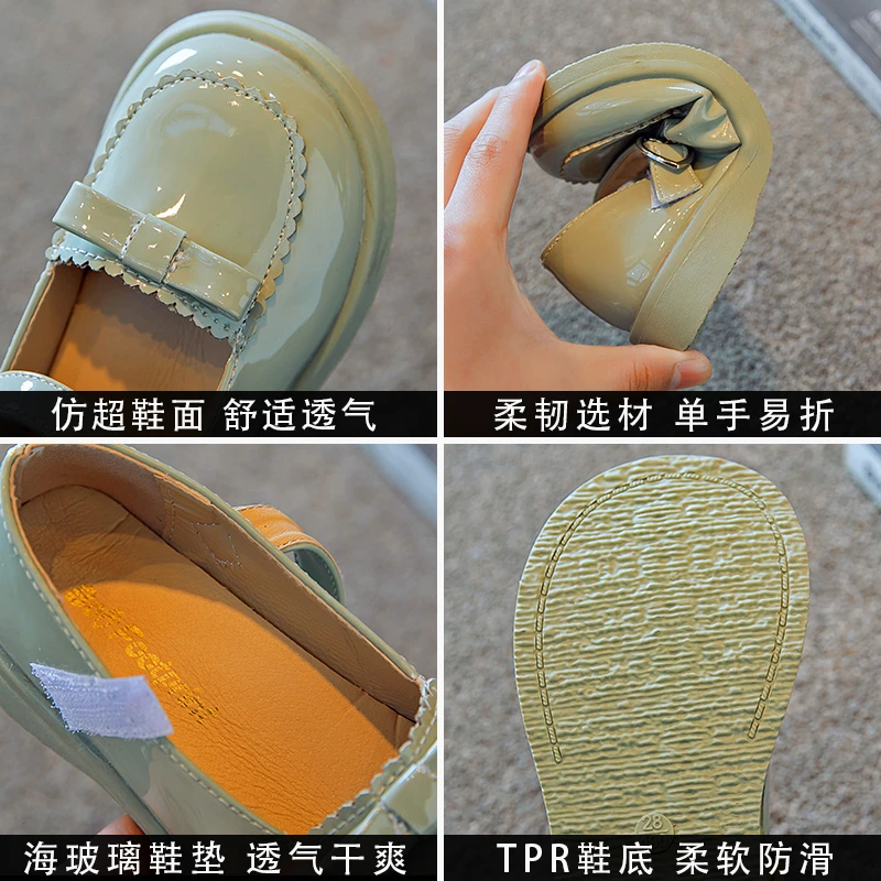 Демисезонные кожаные туфли для девочек, черные, зеленые туфли с обо...