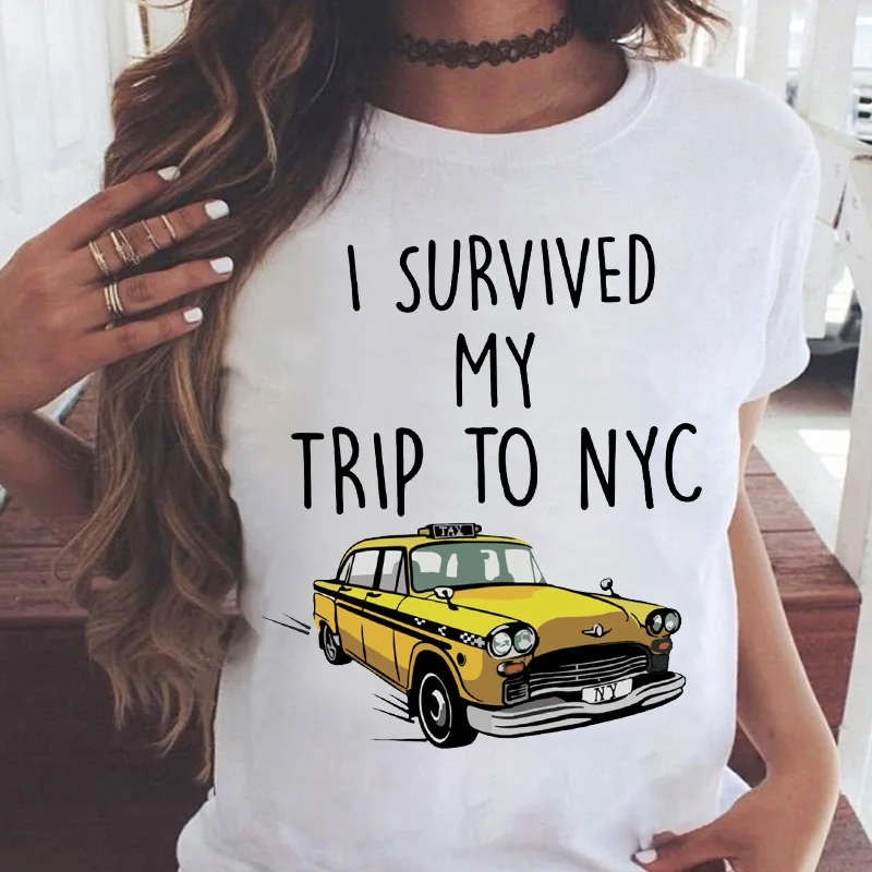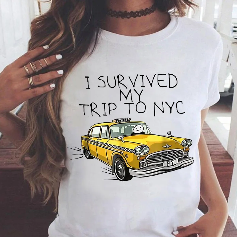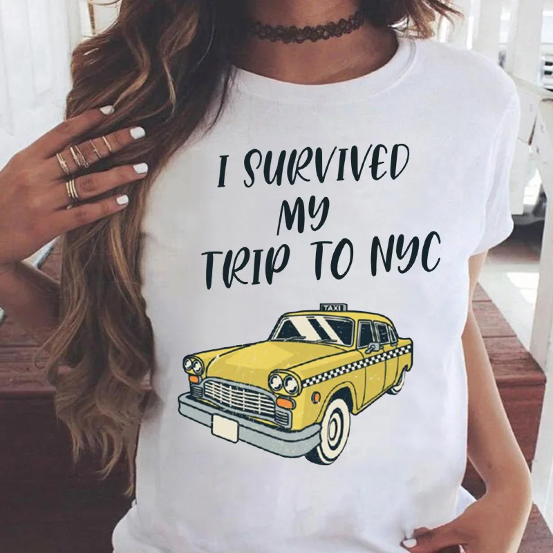 Я пережила мое путешествие в nyc Модные женские футболки с принтом автомобиля Футболка Harajuku одежда графическая футболка Женские топы