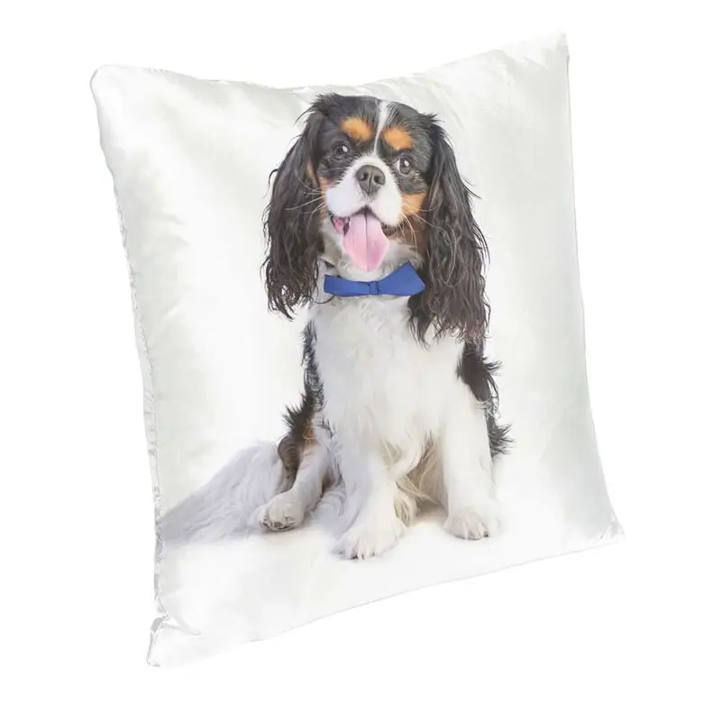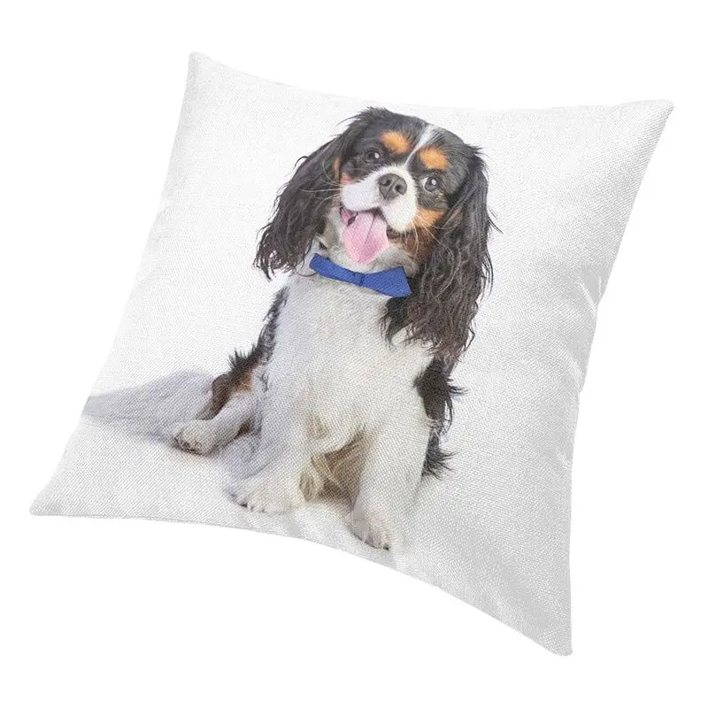 Яркий милый чехол-наволочка с кавалером Кинг Шарлем спаниелом, дома...