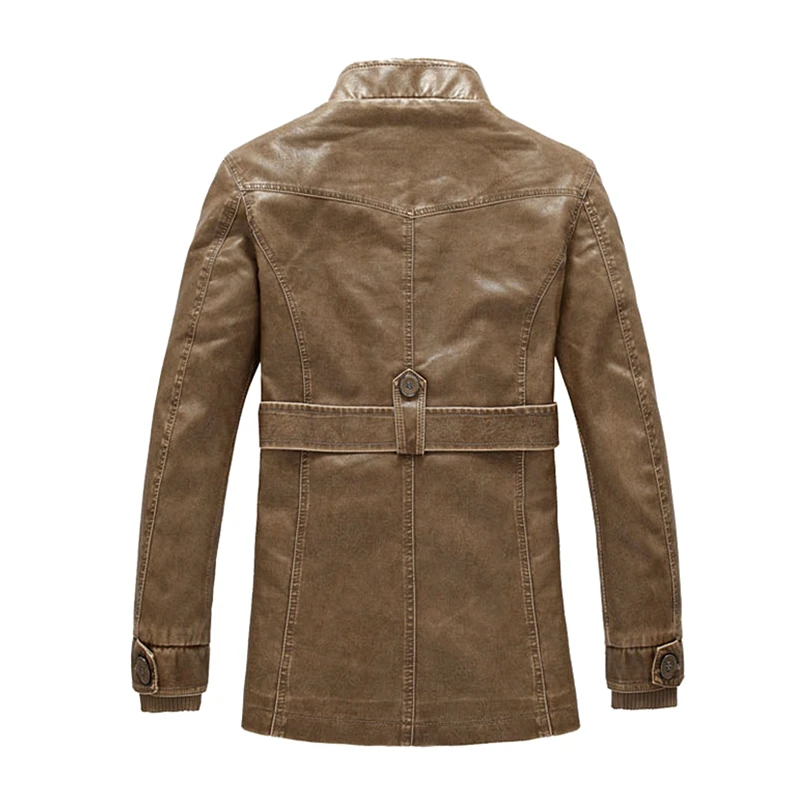 Тренчкот мужской из искусственной кожи, утепленная длинная мотоцикл...