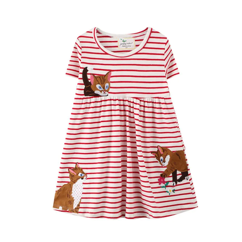 Вечерние платья для девочек Jumping Meters, летняя хлопковая одежда с вышивкой кошки, Лидер продаж, детская одежда, платье на день рождения для малышей, детская одежда