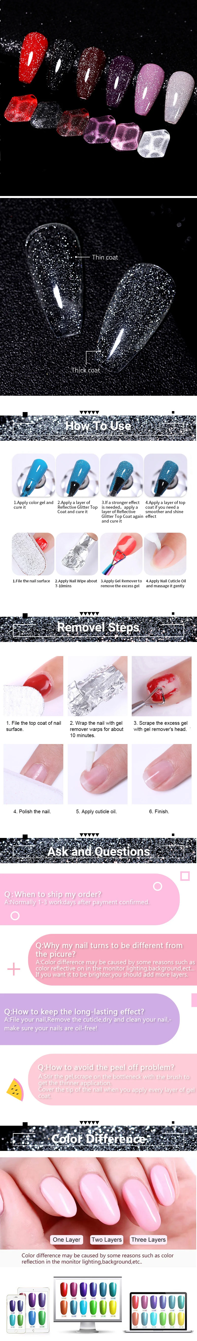 Спецификация:Бренд: LILYCUTEТип: светоотражающий Гель-лакКоличество: 1 бутылкаОбъем: около 7 мл Посылка:LILYCUTE 7 мл светоотражающий Гель-лак Характеристика:100% новая розничная продажа и высокое качество.Подходит для нанесения на УФ-гелевые ногти, акриловые ногти и натуральные ногти и т. Д.Помогите укрепить ногти с помощью прочного блестящего пальто.Идеально подходит как для профессионального использования, так и для личного использования. Как использовать наш гель?Шаг 1. Очистите ногти, затем закрепите поверхность ногтей как обычный ноготь.Шаг 2. Полностью встряхните Гель-лак, он может сделать Гель-лак сбалансированным. (ВАЖНО)Шаг 3. Сначала нанесите базовый гель, который может сделать Гель-лак длительным, вылечите УФ-лампой или светодиодный лампой. (Необходимо)Шаг 4. Нанесите слой цветного УФ-геля непосредственно, вылечите УФ-лампой в течение 2 минут или вылечите светодиодный светильник в течение 60 секунд.Шаг 5. Нанесите слой отражающего геля и вылечите.Шаг 6. Нанесите второй слой отражающим и лечебным.Шаг 7. Нанесите слой армирующего геля и вылечите. (Не требуется) Примечание:* Хранить в недоступном для детей месте.* Избегайте касания ушей, носа, рта, глаз и других частей.* Если возникают покраснения или другие признаки негативной реакции, немедленно прекратите использование.* Хранить в прохладном месте. Хранить вне светильник от солнца или экстремальное воздействие светодиодный/УФ-светильник.