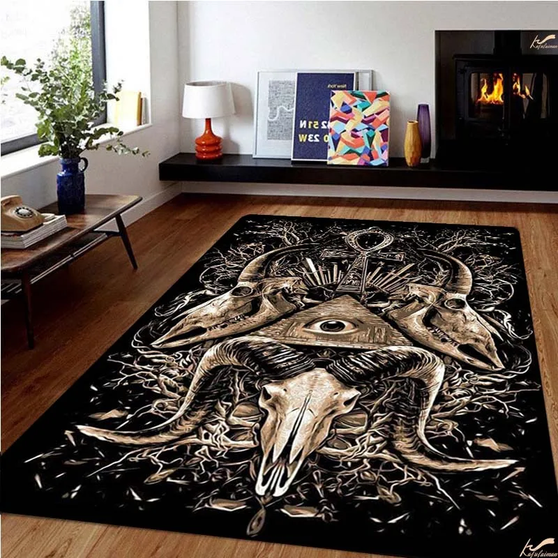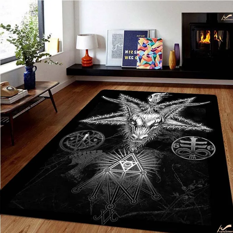 Украшение на Хэллоуин, сатана, ковер для гостиной, большой ковер, ковер с демоном, черный коврик, ковер с блестящим демоном