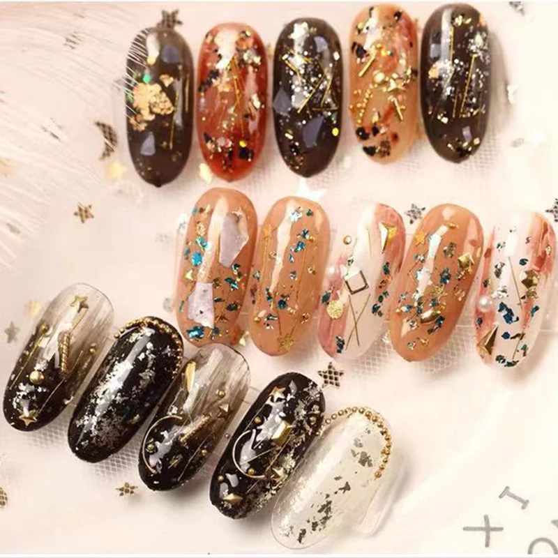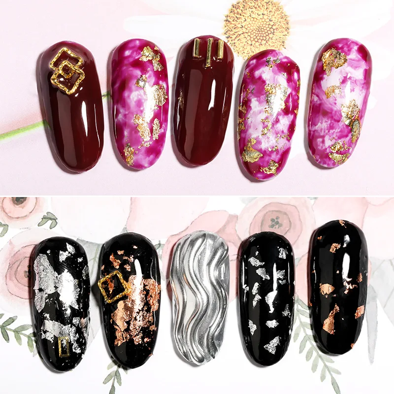 Простота в использовании: после отверждения базового покрытия, затем нанесите Гель-лак, используйте пинцет, чтобы положить ломтики на ваш ноготь, наконец, продолжайте запечатывать его верхним слоем.