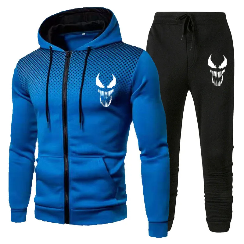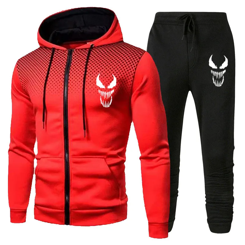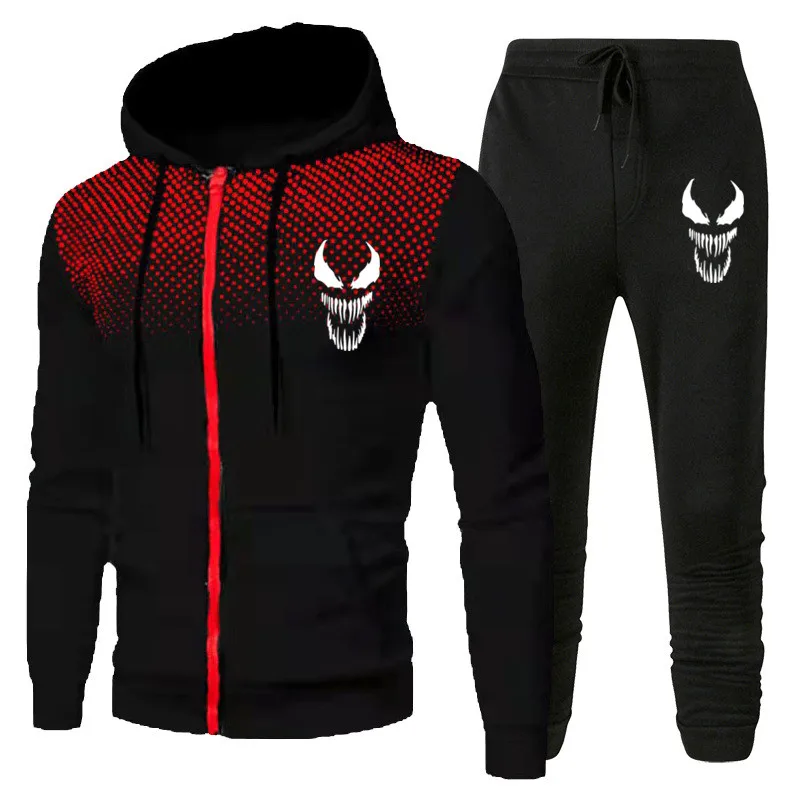 Костюм спортивный мужской с капюшоном, повседневная кофта на молнии и спортивные штаны, тренировочный костюм, флисовая одежда с Веном, на весну