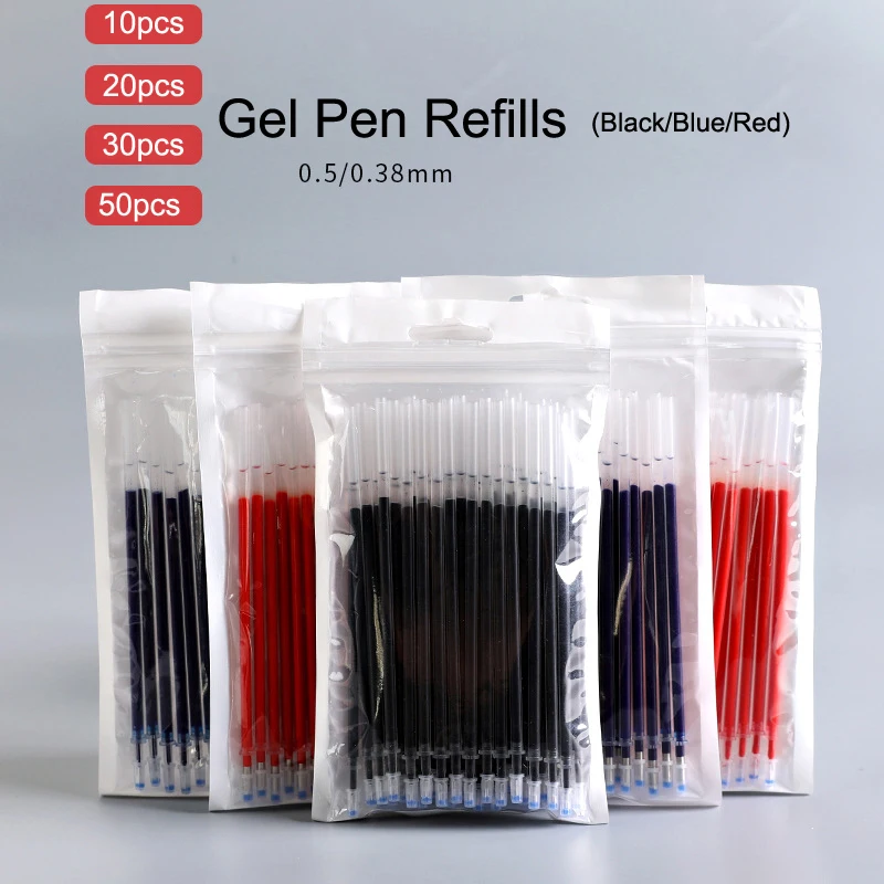 10/20 Вт, 30 Вт, 50 шт. Цвет: черный/красный/синий Заправка для гелевой ручки 0,38 мм 0,5 мм чернила Заправка для гелевой ручки для наконечнике из жидкого геля Ручка-роллер ручка с гелевыми чернилами
