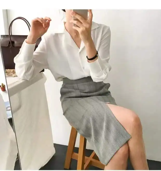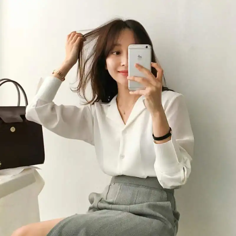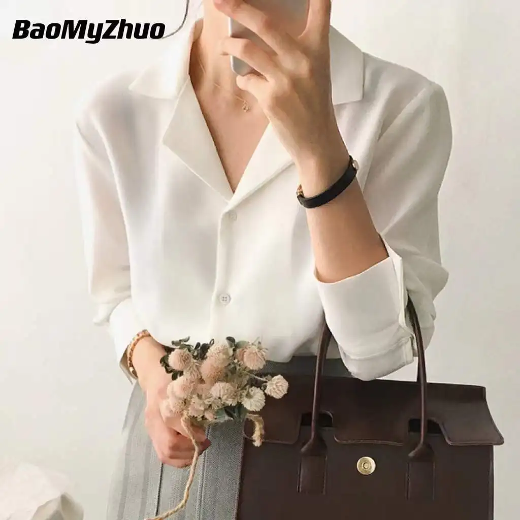 Женская винтажная блузка с длинным рукавом, элегантная повседневная однотонная белая блузка в Корейском стиле, весна 2022