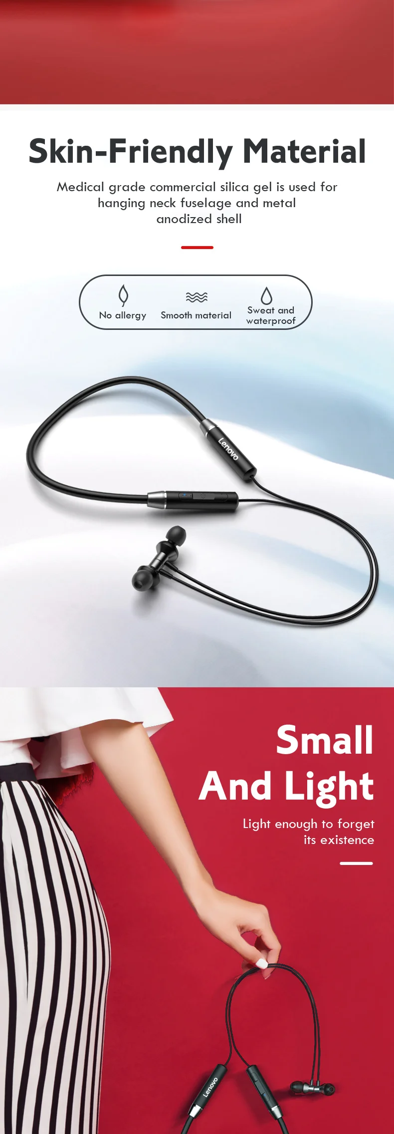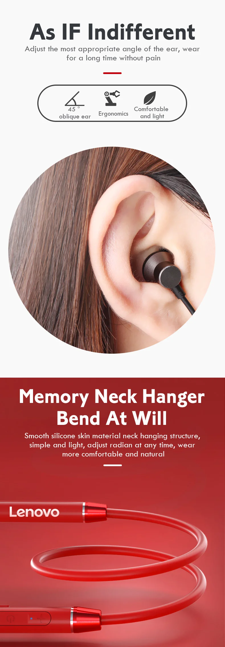 Наушники Lenovo HE05, совместимые с Bluetooth, магнитная Спортивная книга, беспроводные наушники с шейной лентой, IPX5 водонепроницаемые наушники