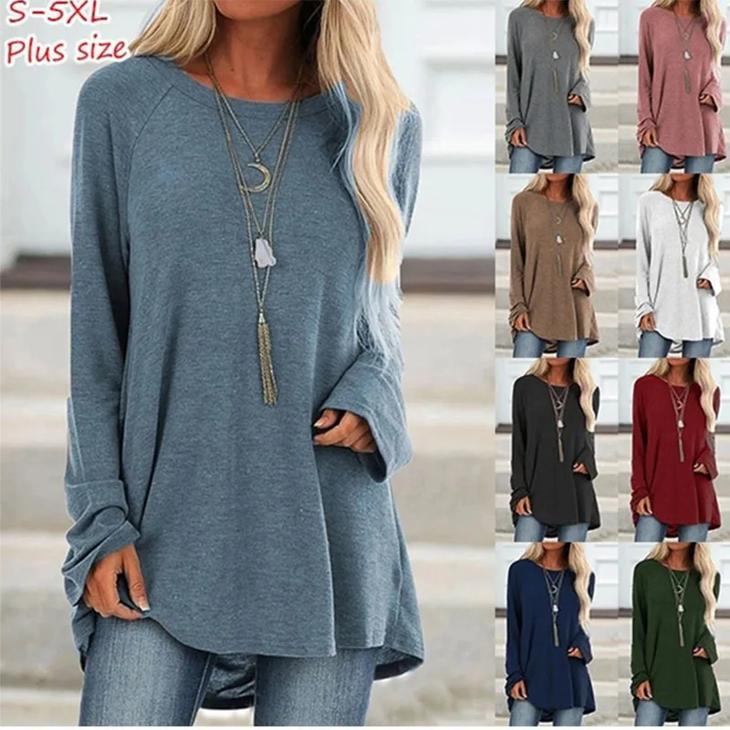 Новинка, женская одежда в стиле Харадзюку, хлопковая футболка средней длины в стиле оверсайз, однотонная свободная повседневная женская футболка с длинным рукавом и круглым вырезом, весна-осень
