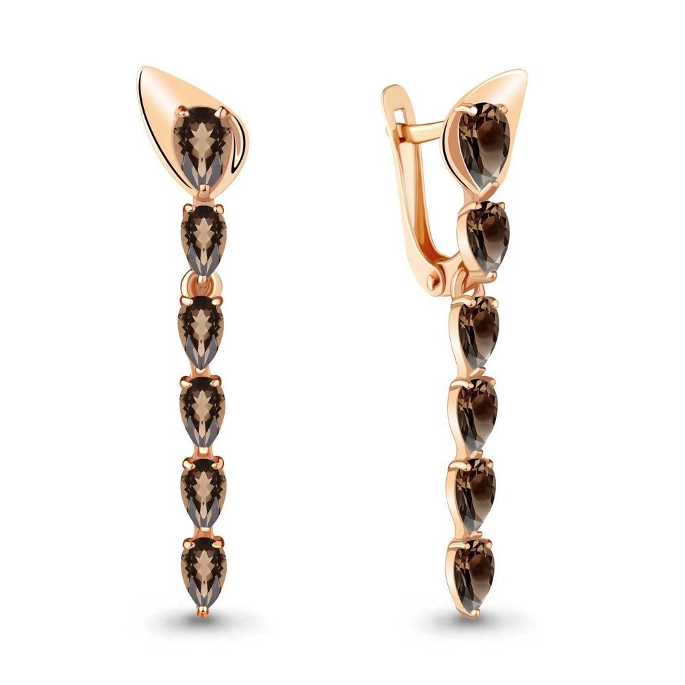 Серьги тренд 2022 NOVOZOLOTO серебро подлинное 925 пробы, кварц дымчатый, покрытие золото, производство Россия, оригинал, бирка