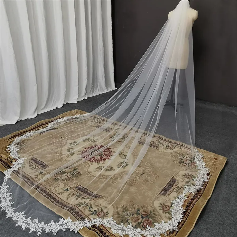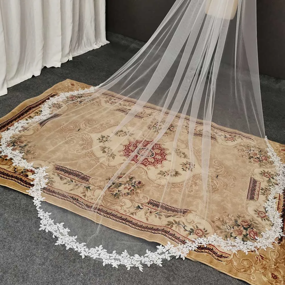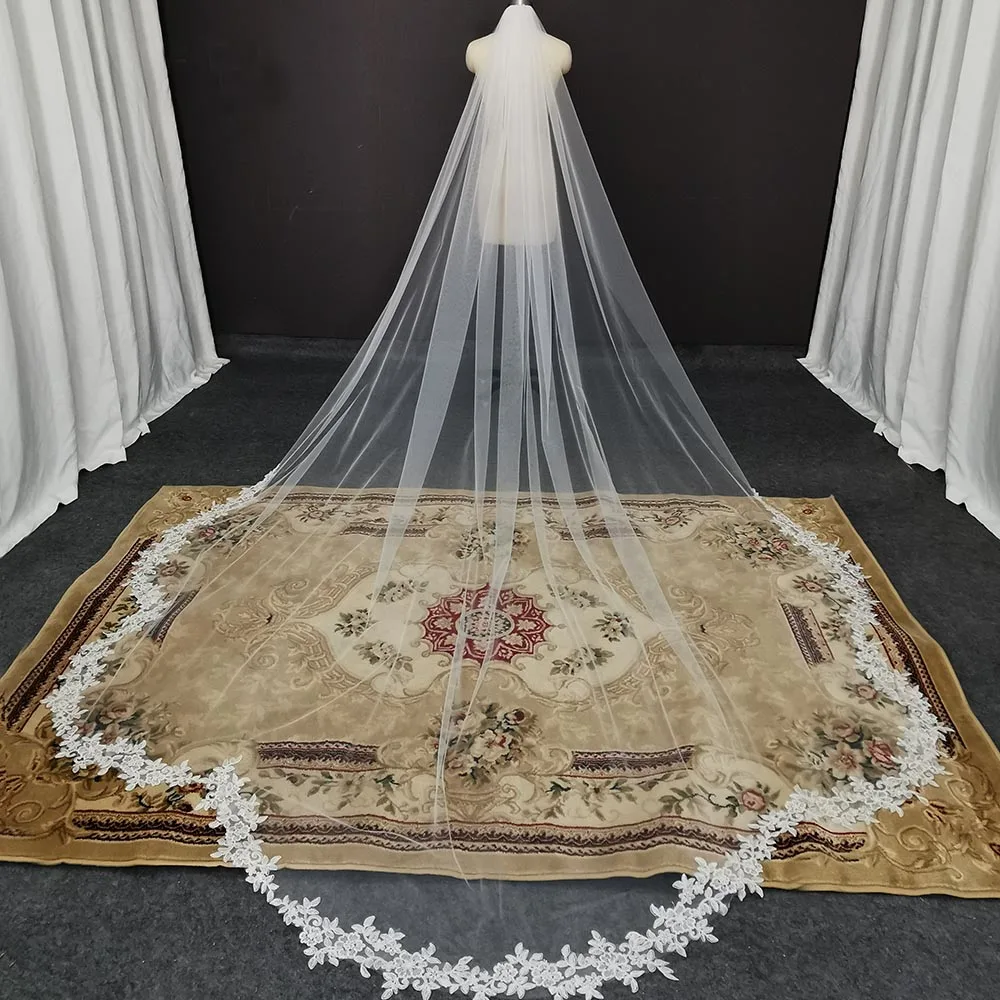 Винтажная длинная кружевная свадебная вуаль с зубцами, длиной 3,5 метра, однослойная свадебная вуаль специального размера с расческой, свадебные аксессуары