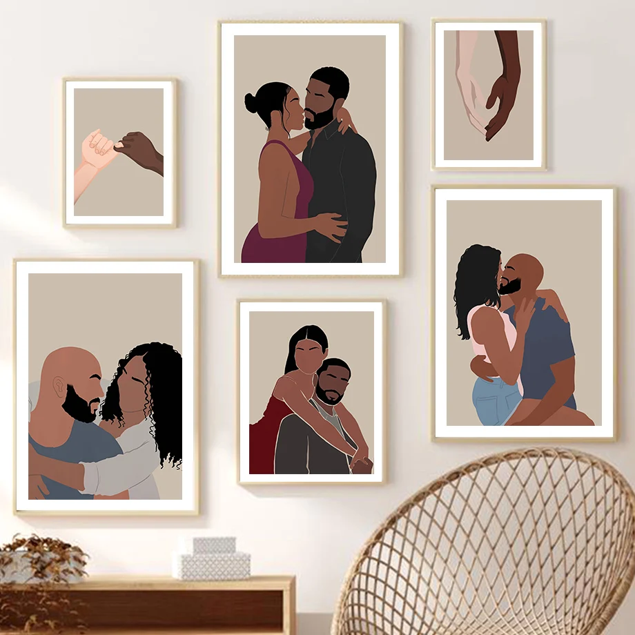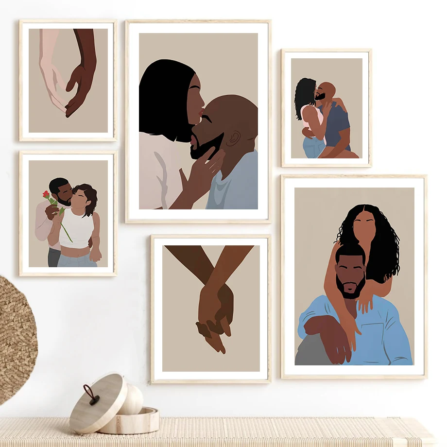 Черная девушка пара Поцелуй иллюстрация абстрактные настенные худож...